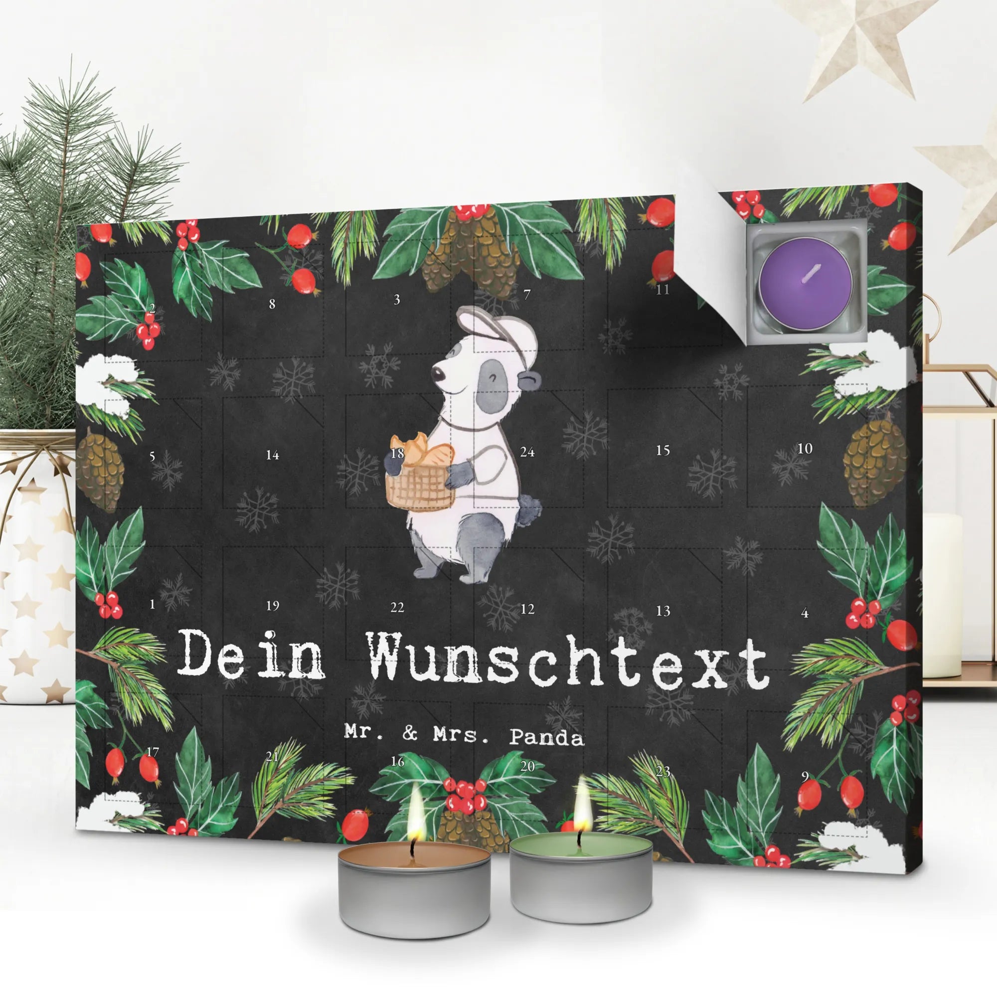 Mach es persönlich: Gestalte deinen personalisierten Duftkerzen Adventskalender und überrasche mit täglichen Duftmomenten – jetzt bei Mr. & Mrs. Panda bestellen!