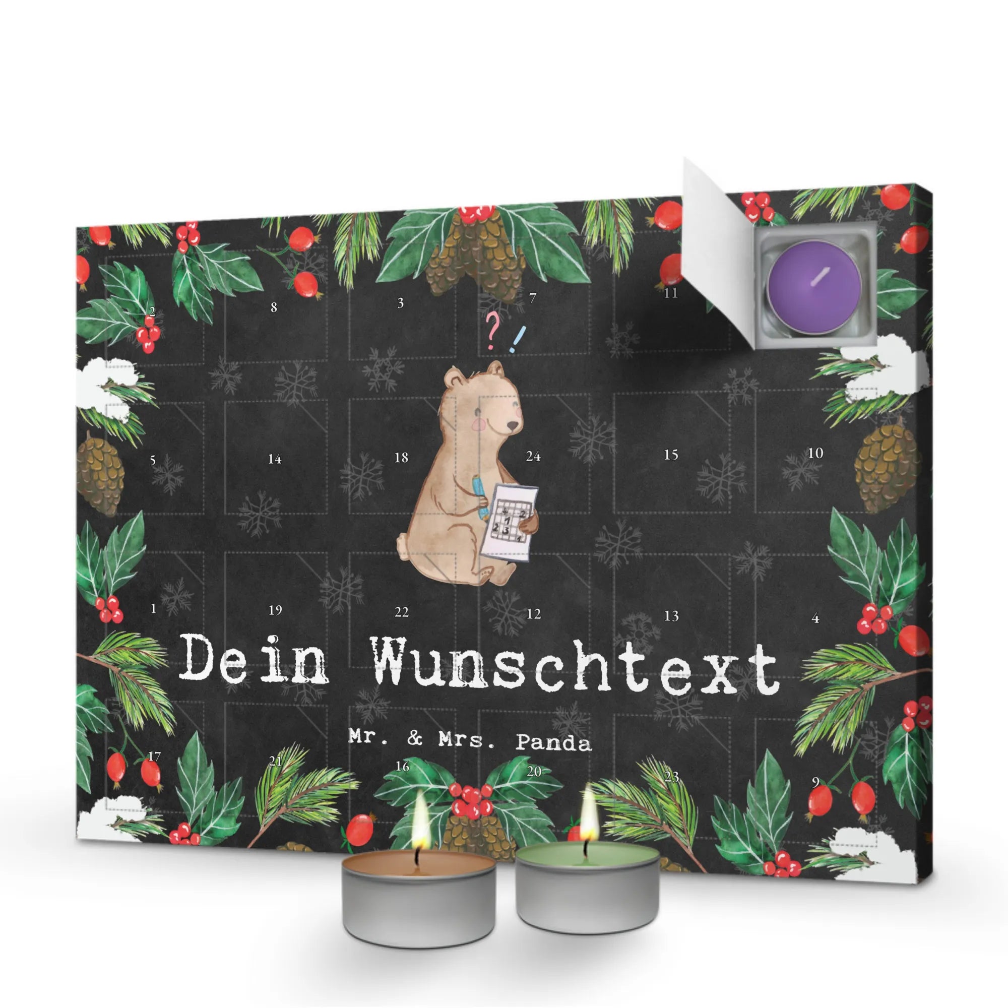 Personalisierter Duftkerzen Adventskalender Bär Rätsel lösen - Kreidetafel