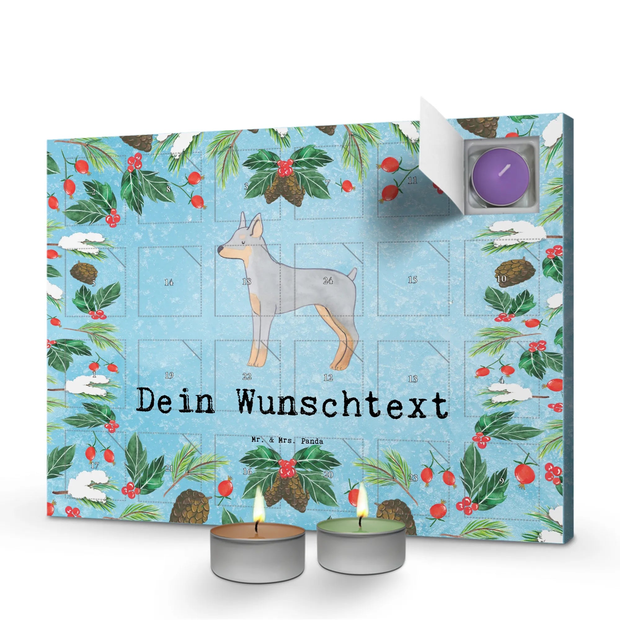 Personalisierter Duftkerzen Adventskalender Dobermann Pinscher Moment - Eisblau