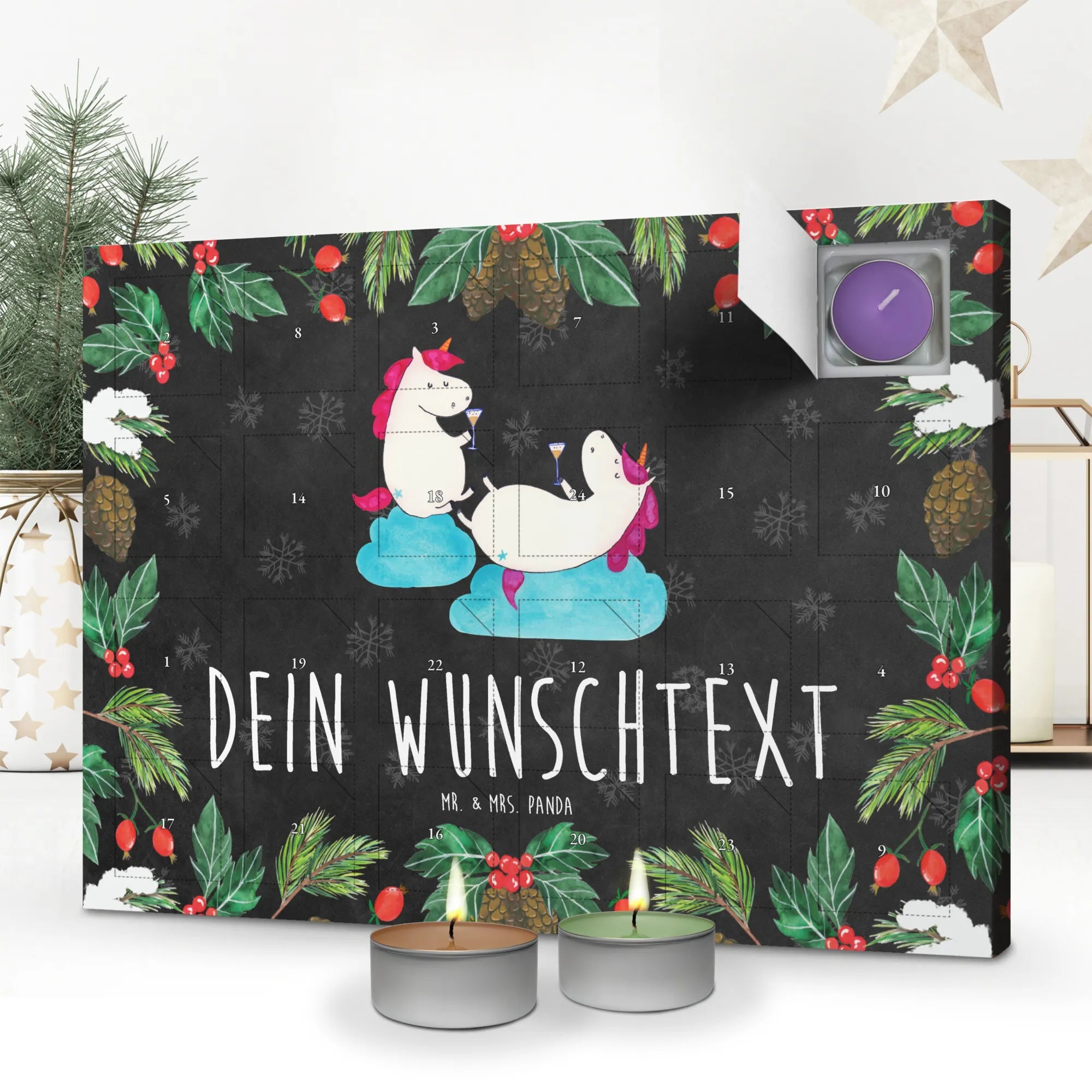 Duftkerzen Adventskalender mit Namen Einhorn Sekt – Mr. & Mrs. Panda