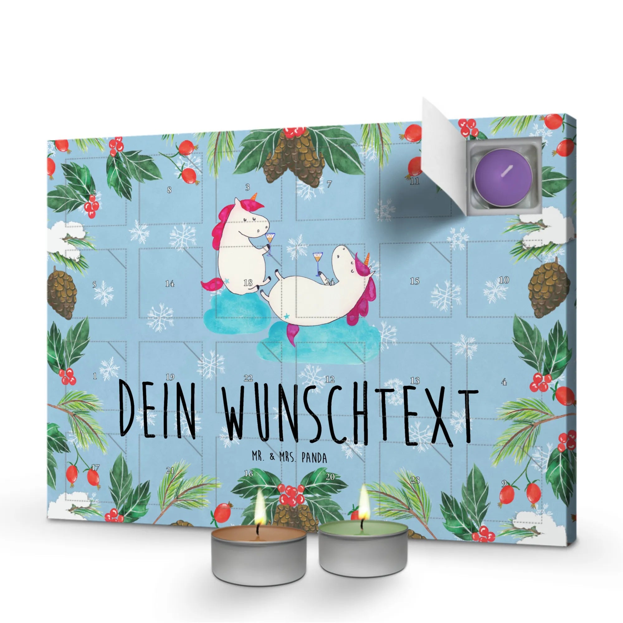 Personalisierter Duftkerzen Adventskalender Einhorn Sekt - Kreidetafel