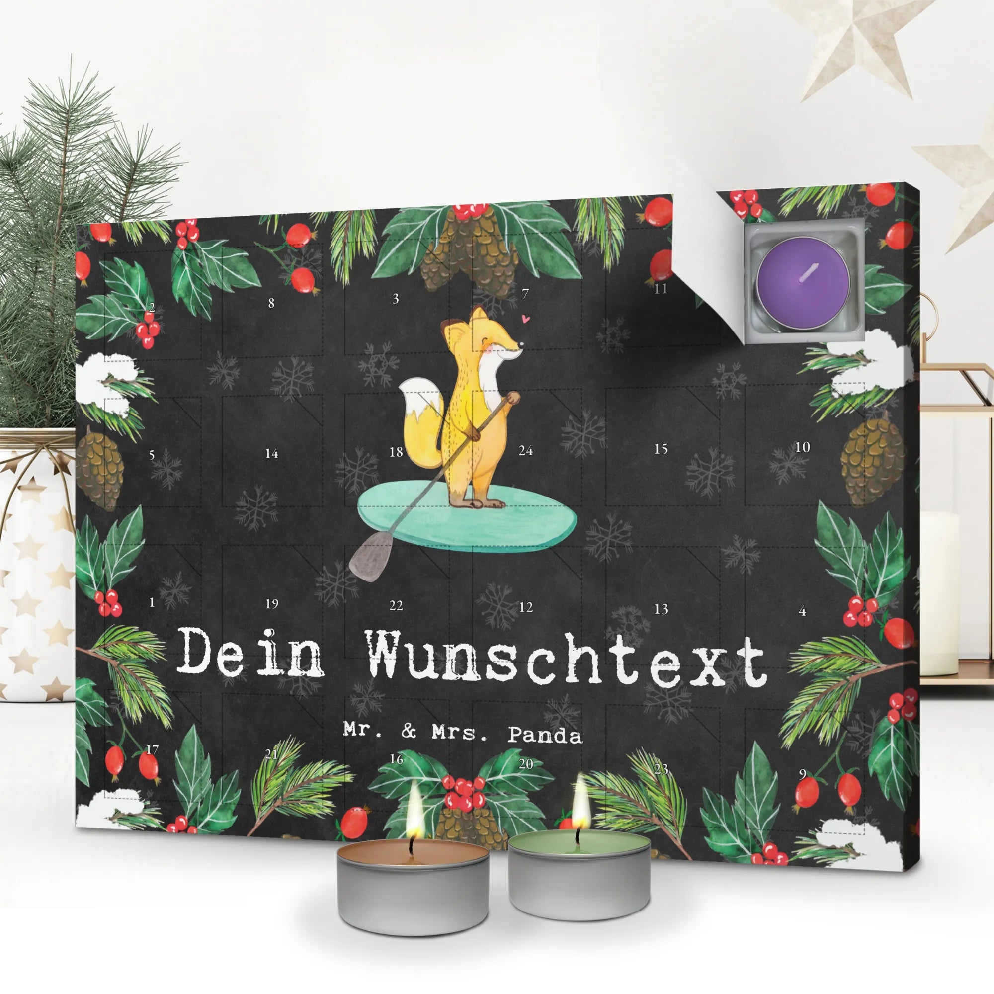 Personalisierter Duftkerzen Adventskalender Fuchs Stand Up Paddling - Kreidetafel