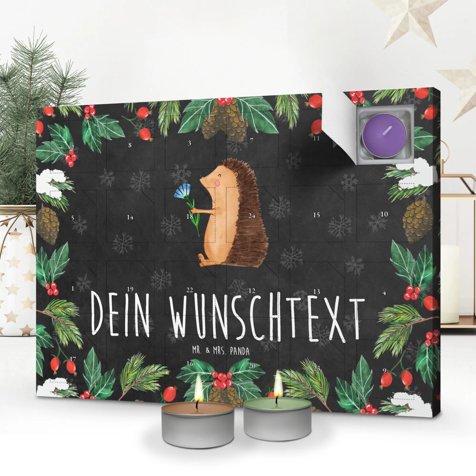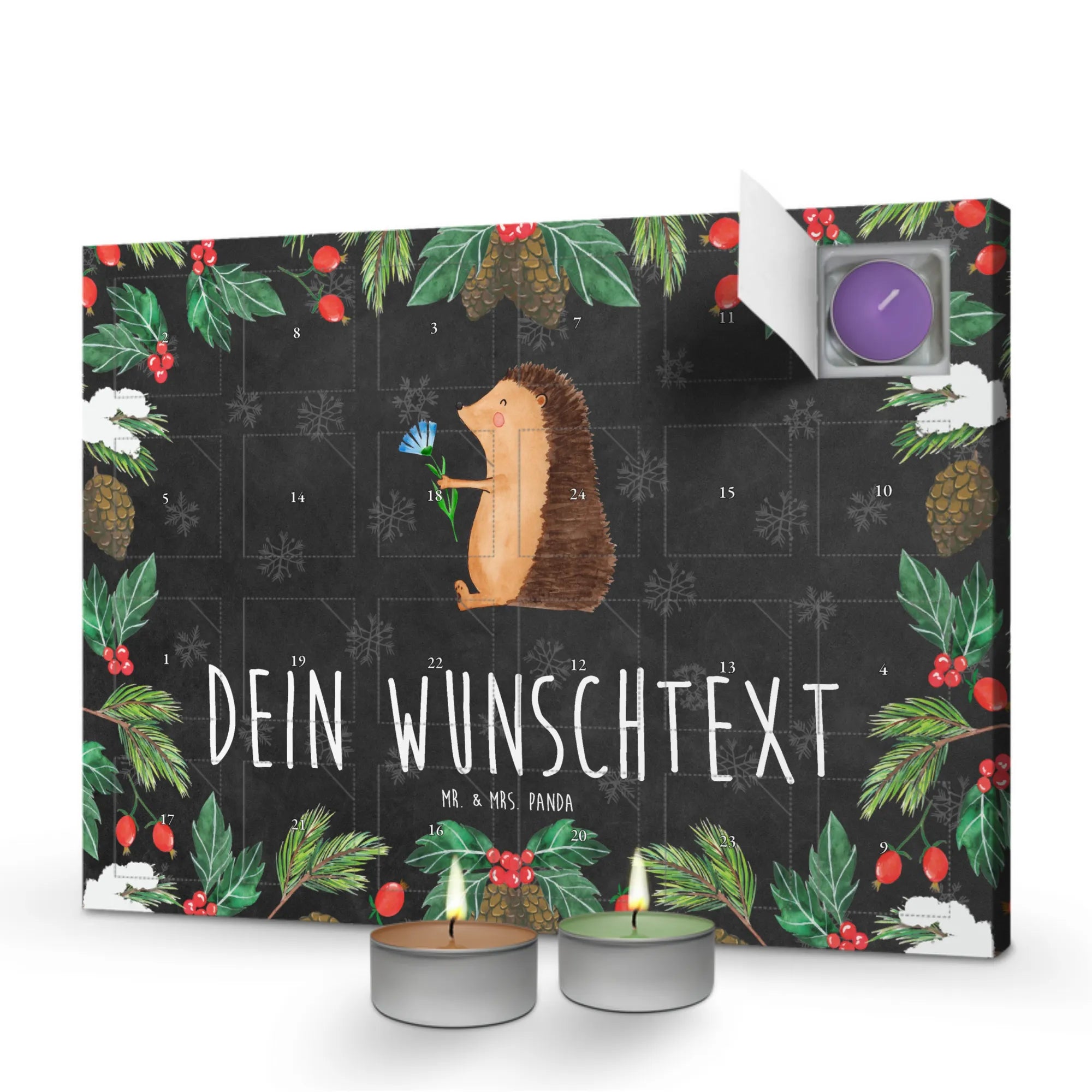 Kerzenkalender personalisiert Igel Blumen - Kreidetafel