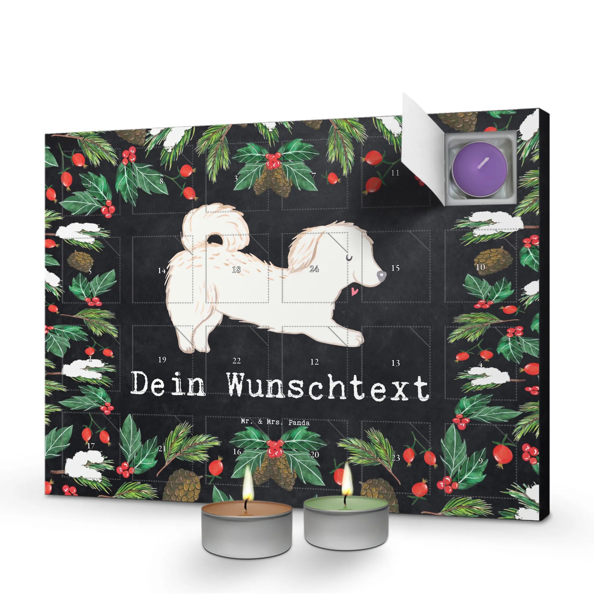 Erlebe Duft und Design: Bestell jetzt den personalisierten Duftkerzen Adventskalender und genieße 24 Tage voller Duftüberraschungen von Mr. & Mrs. Panda.