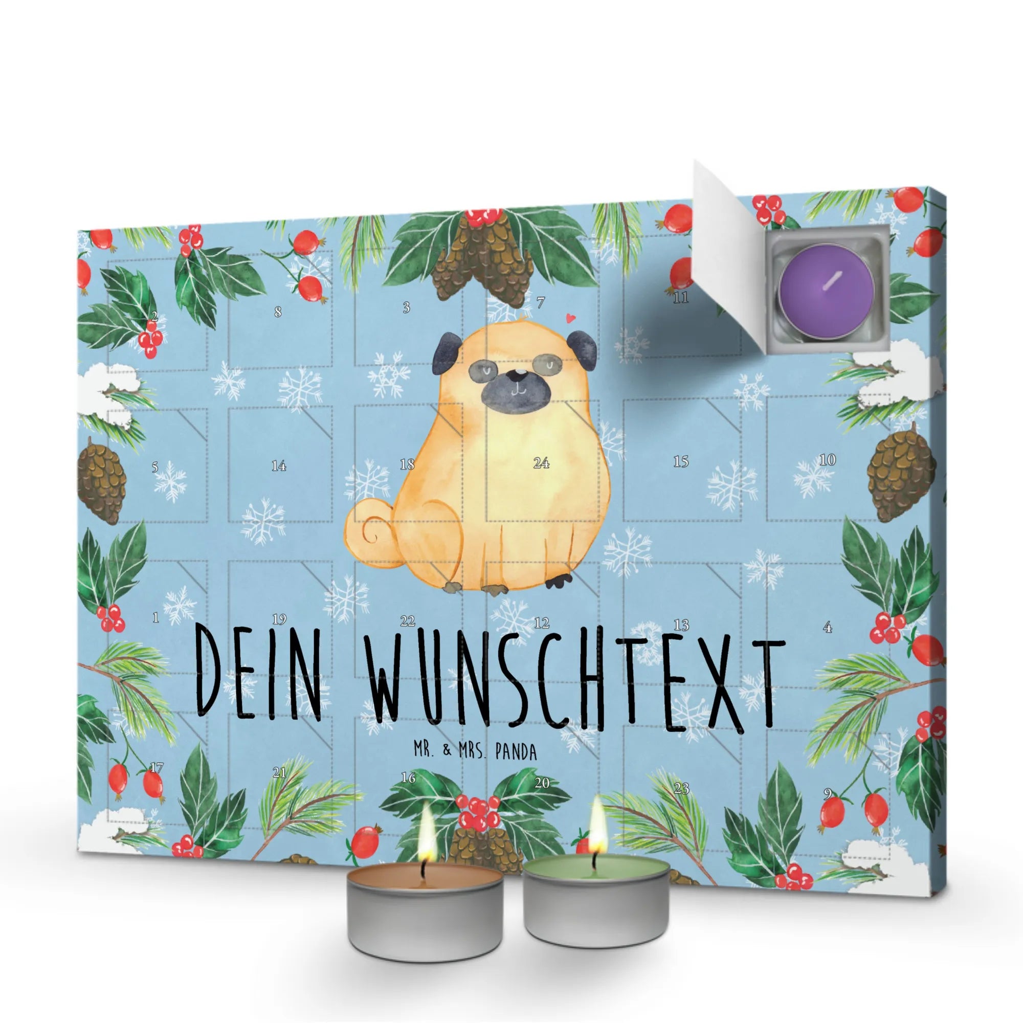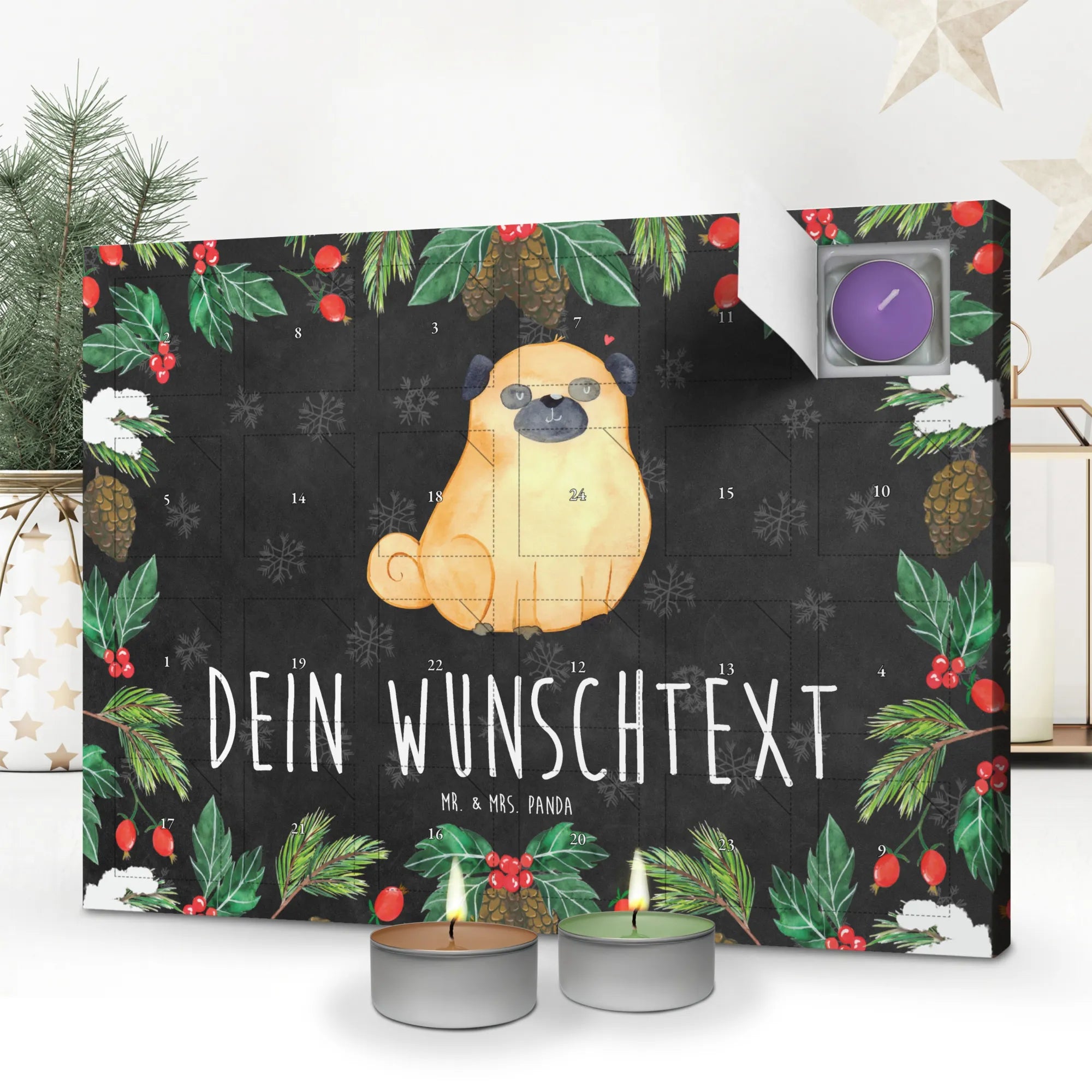 Personalisierter Duftkerzen Adventskalender Mops - Kreidetafel