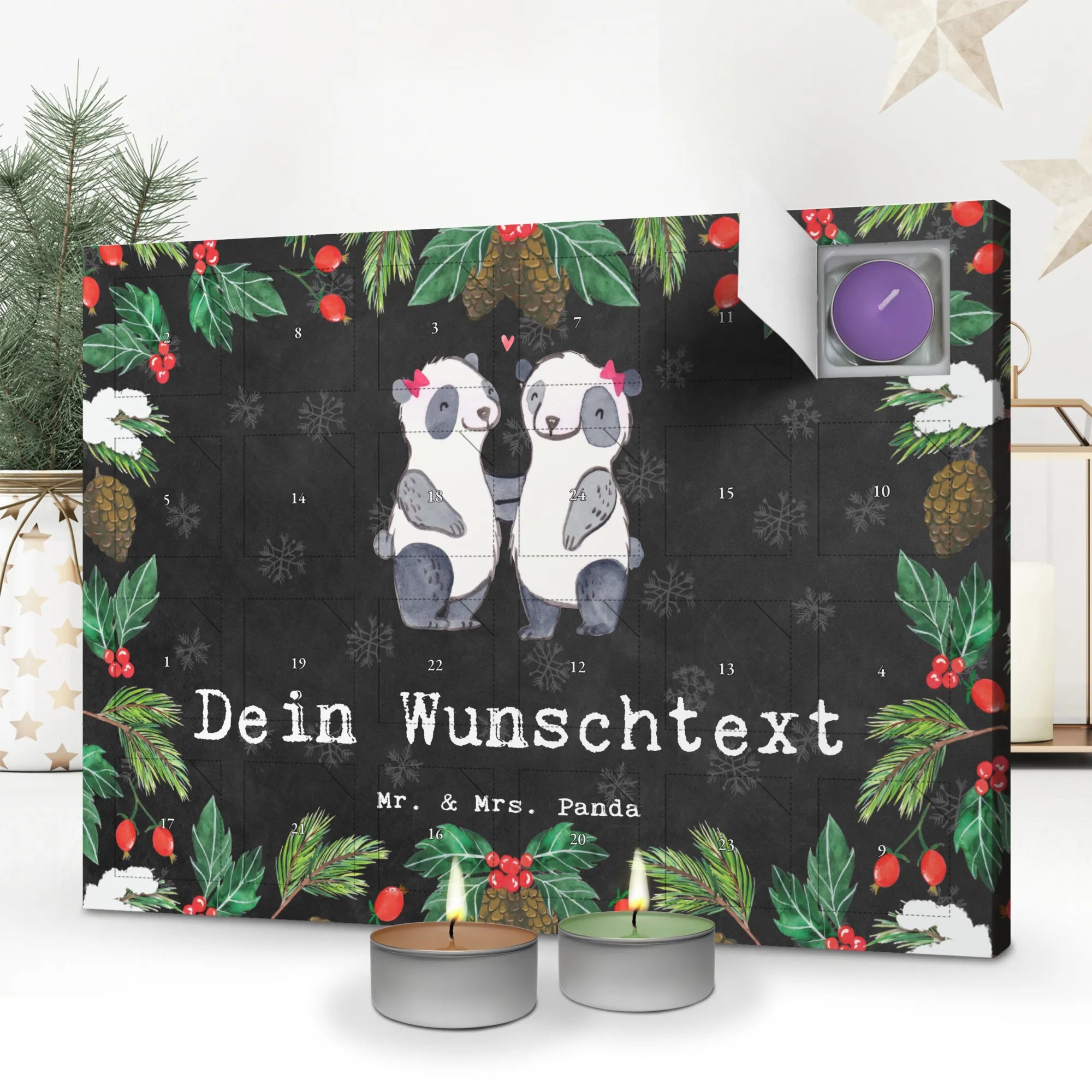 Personalisierter Duftkerzen Adventskalender Panda Beste Schwester der Welt - Kreidetafel