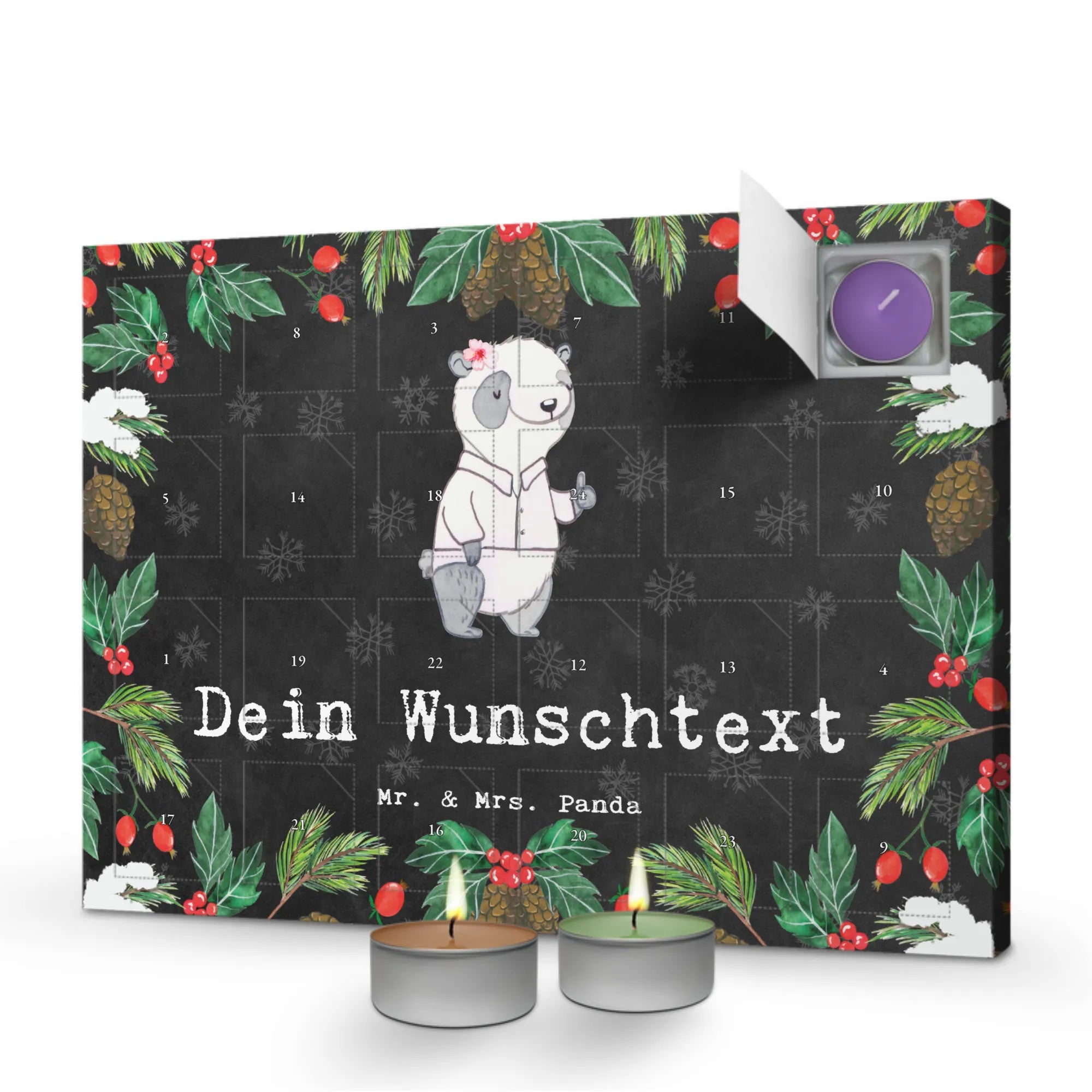 Erlebe Duft und Design: Bestell jetzt den personalisierten Duftkerzen Adventskalender und genieße 24 Tage voller Duftüberraschungen von Mr. & Mrs. Panda.
