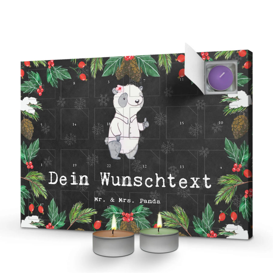 Personalisierter Duftkerzen Adventskalender Panda Beste Teamleiterin - Kreidetafel