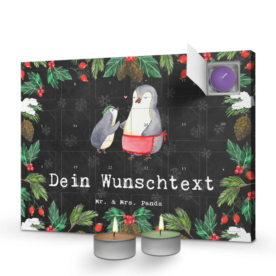 Personalisierter Duftkerzen Adventskalender Pinguin Beste Mami der Welt - Kreidetafel