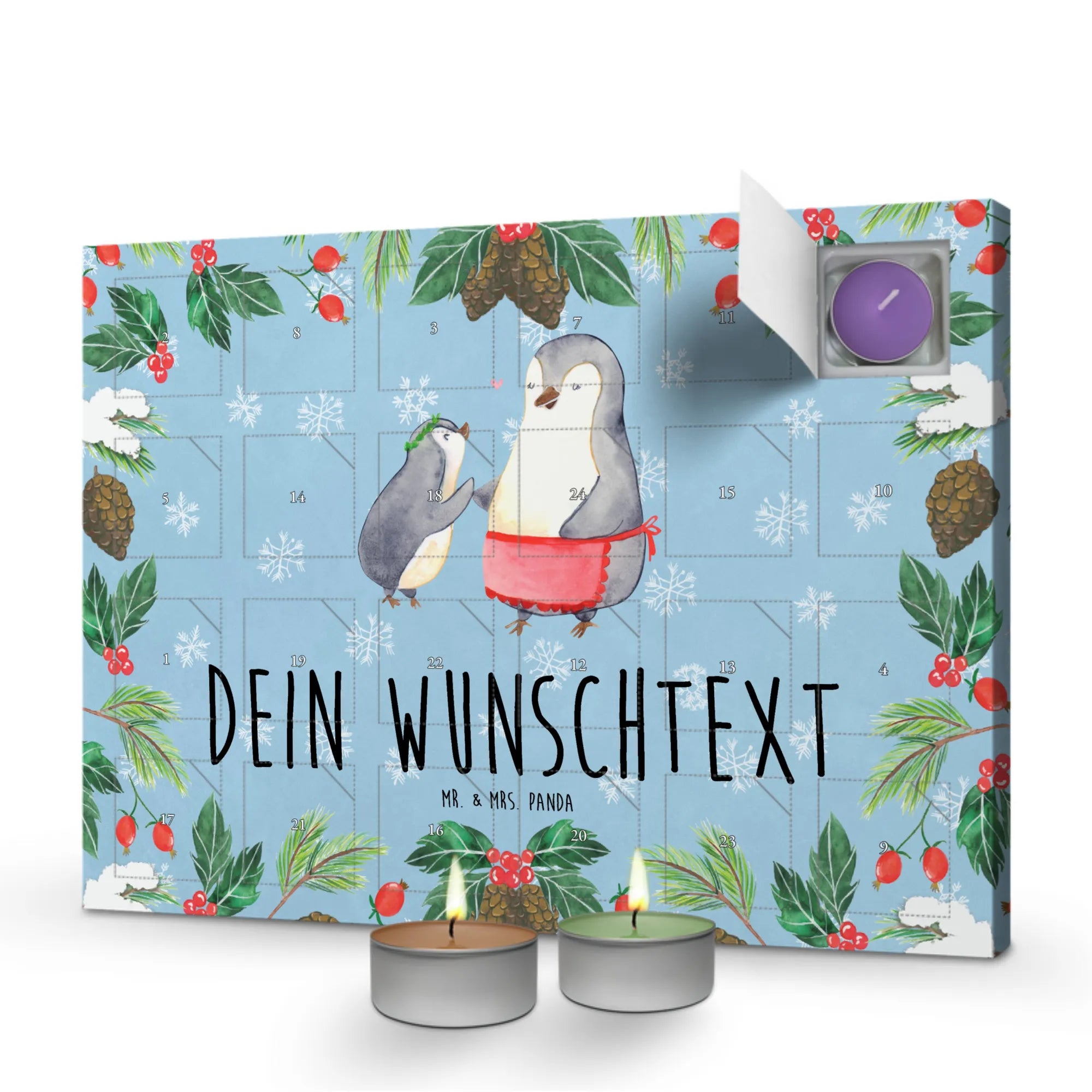 Du suchst das perfekte Geschenk für die Mama oder Mutti?Dann ist der personalisierte Duftkerzen Adventskalender mit dem liebevollen Motiv "Pinguin mit Kind" von Mr. & Mrs. Panda genau das Richtige!