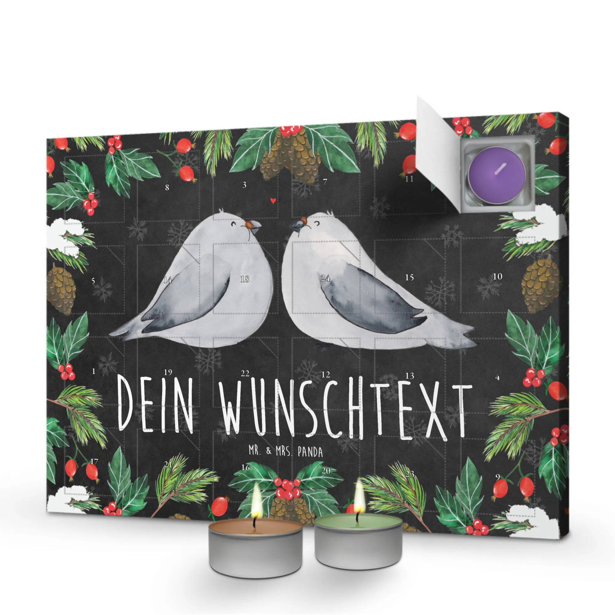Der personalisierte Duftkerzen Adventskalender von Mr. & Mrs. Panda mit dem zauberhaften Motiv der Turteltauben ist das perfekte Geschenk für Verliebte!