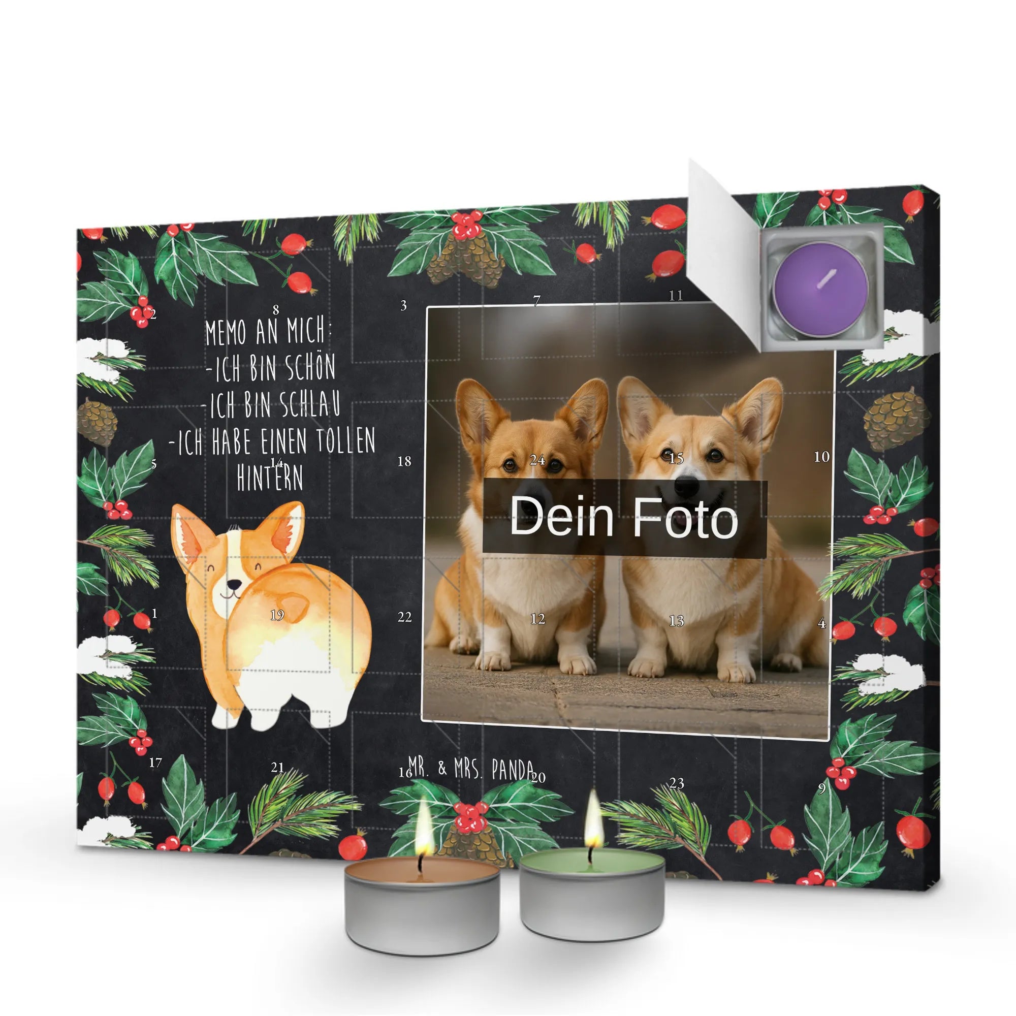 Personalisierter Duftkerzen Foto Adventskalender Corgi Po