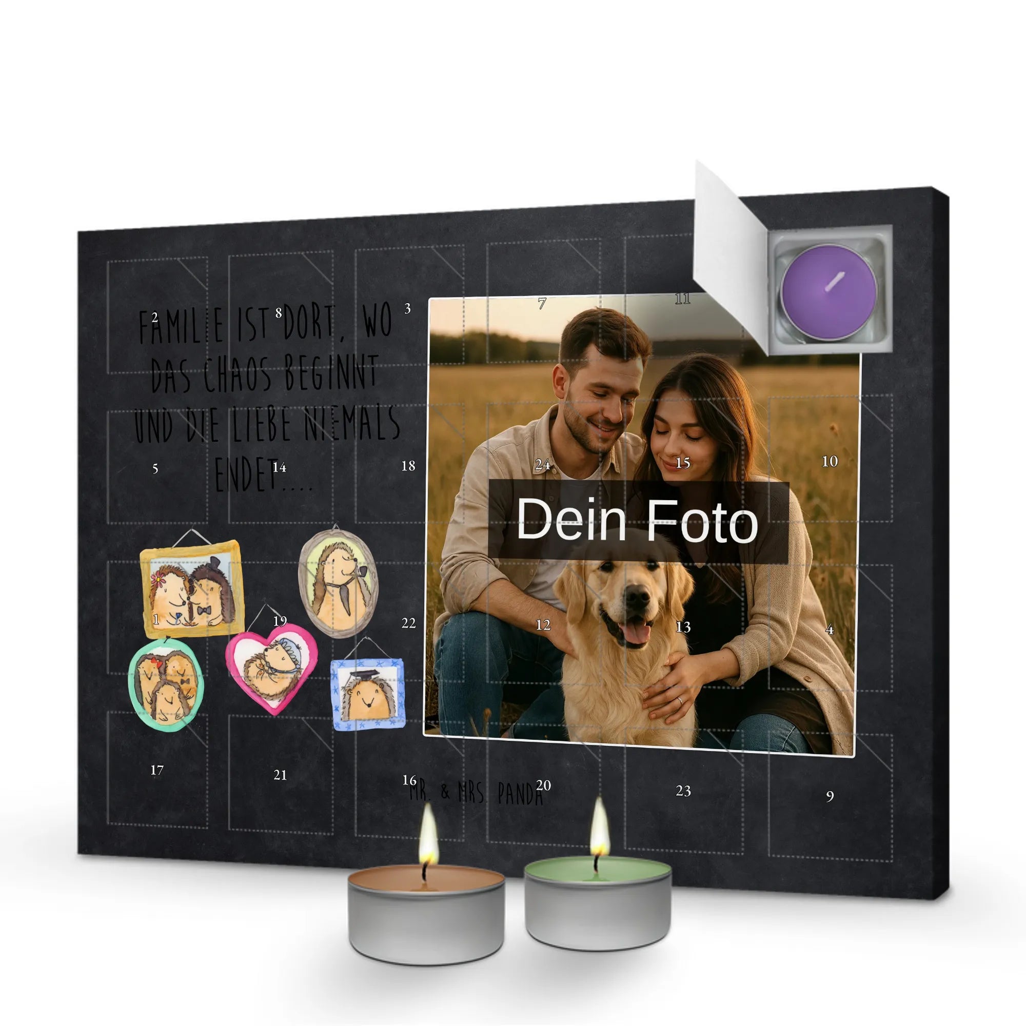Personalisierter Duftkerzen Foto Adventskalender Igel Familie - Kreidetafel