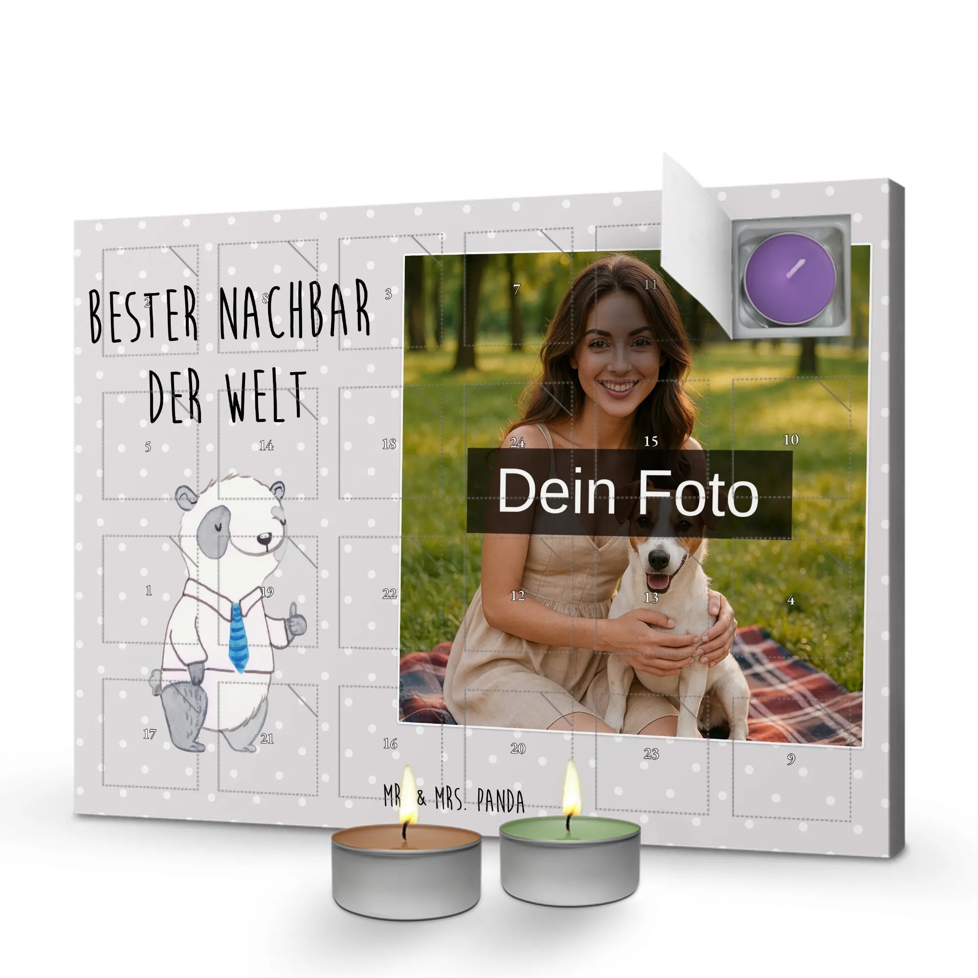 Personalisierter Duftkerzen Foto Adventskalender Panda Bester Nachbar der Welt