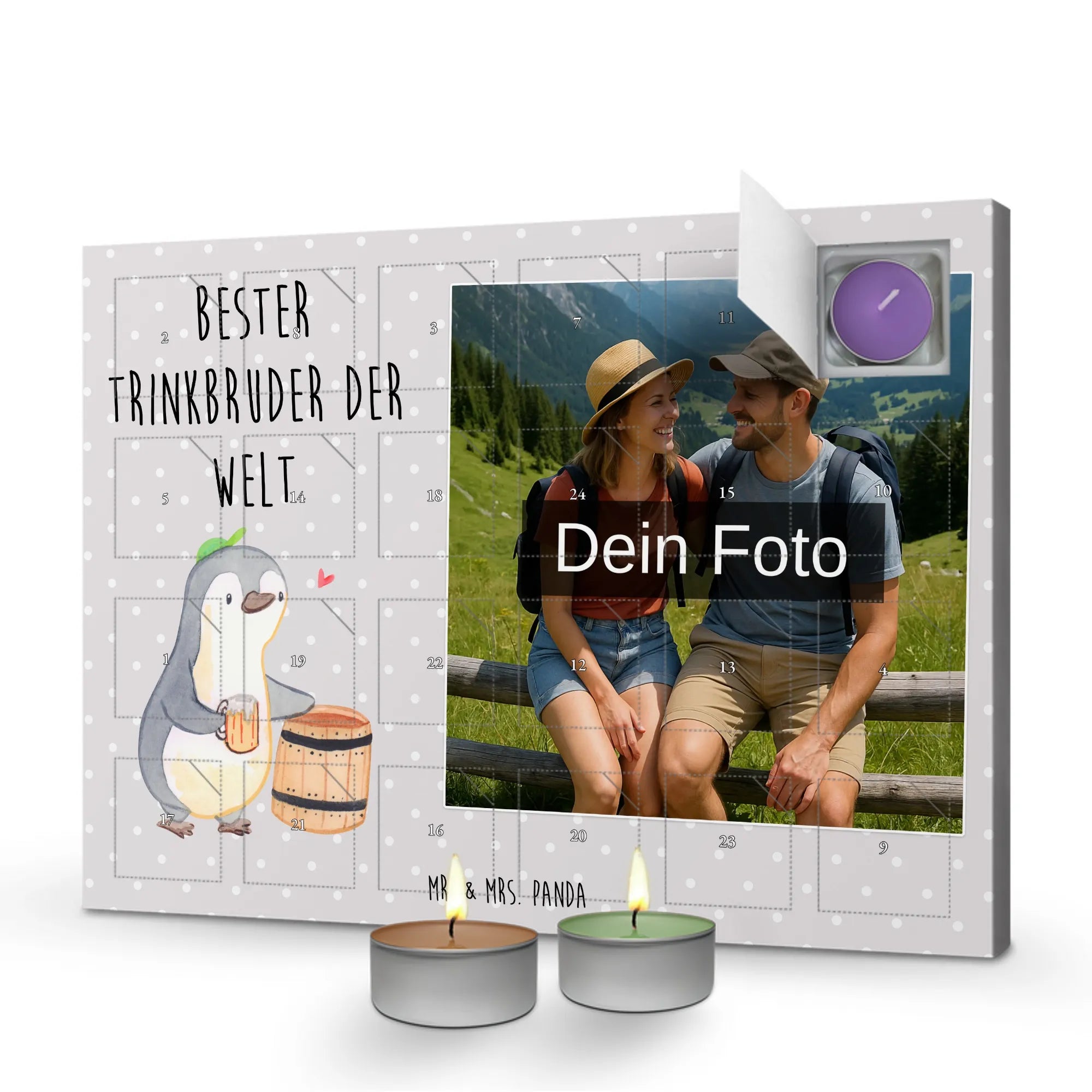 Personalisierter Duftkerzen Foto Adventskalender Pinguin Bester Trinkbruder der Welt