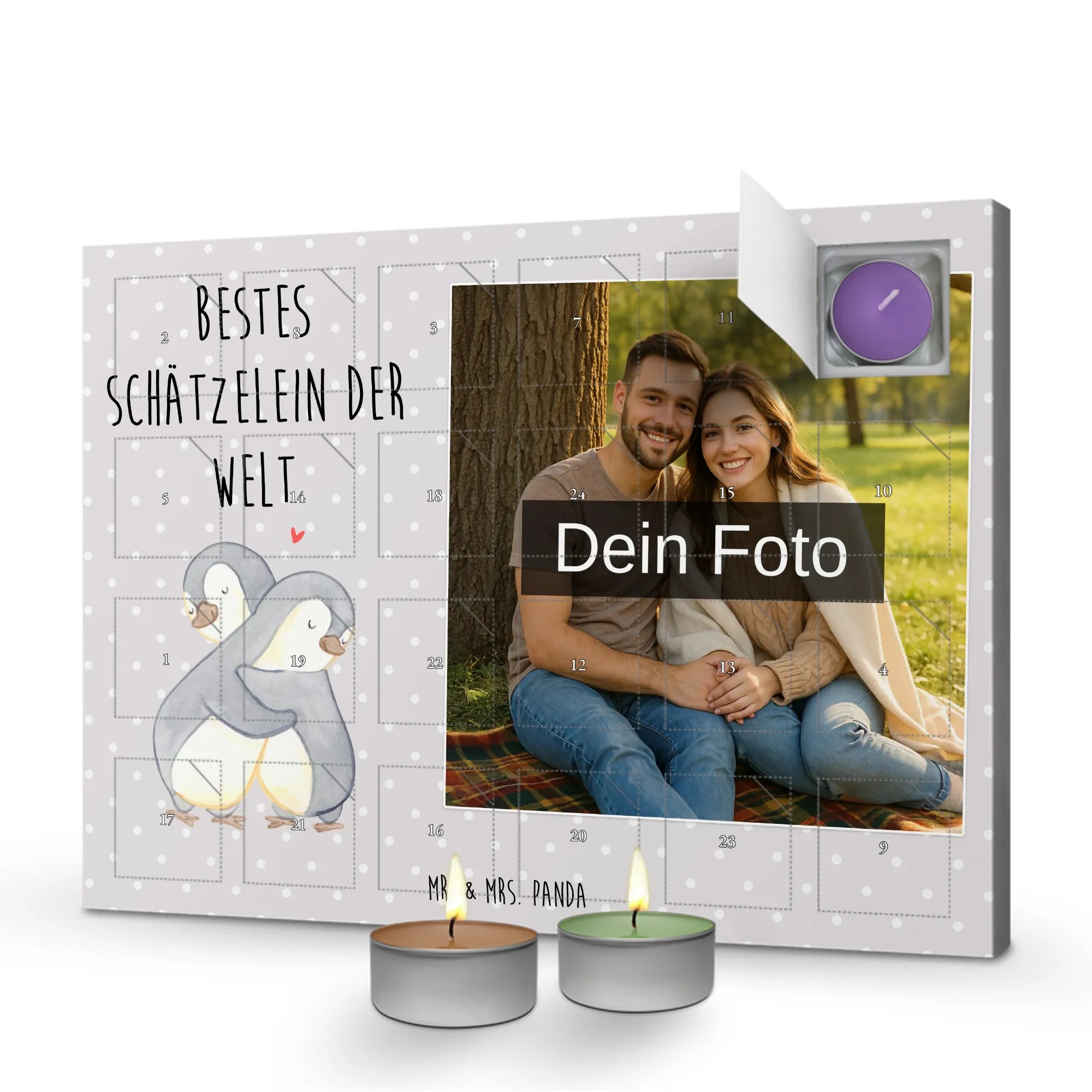 Der personalisierte Duftkerzen Foto Adventskalender "Pinguin Bestes Schätzelein der Welt" von Mr. & Mrs. Panda ist das perfekte Geschenk, um deinen liebsten Menschen eine besondere Freude zu bereiten. Egal, ob für deinen Schatz, deine Freundin, deinen Freund, deinen Ehemann oder deine Ehefrau – dieser Adventskalender bietet eine liebevolle und persönliche Note in der Adventszeit.