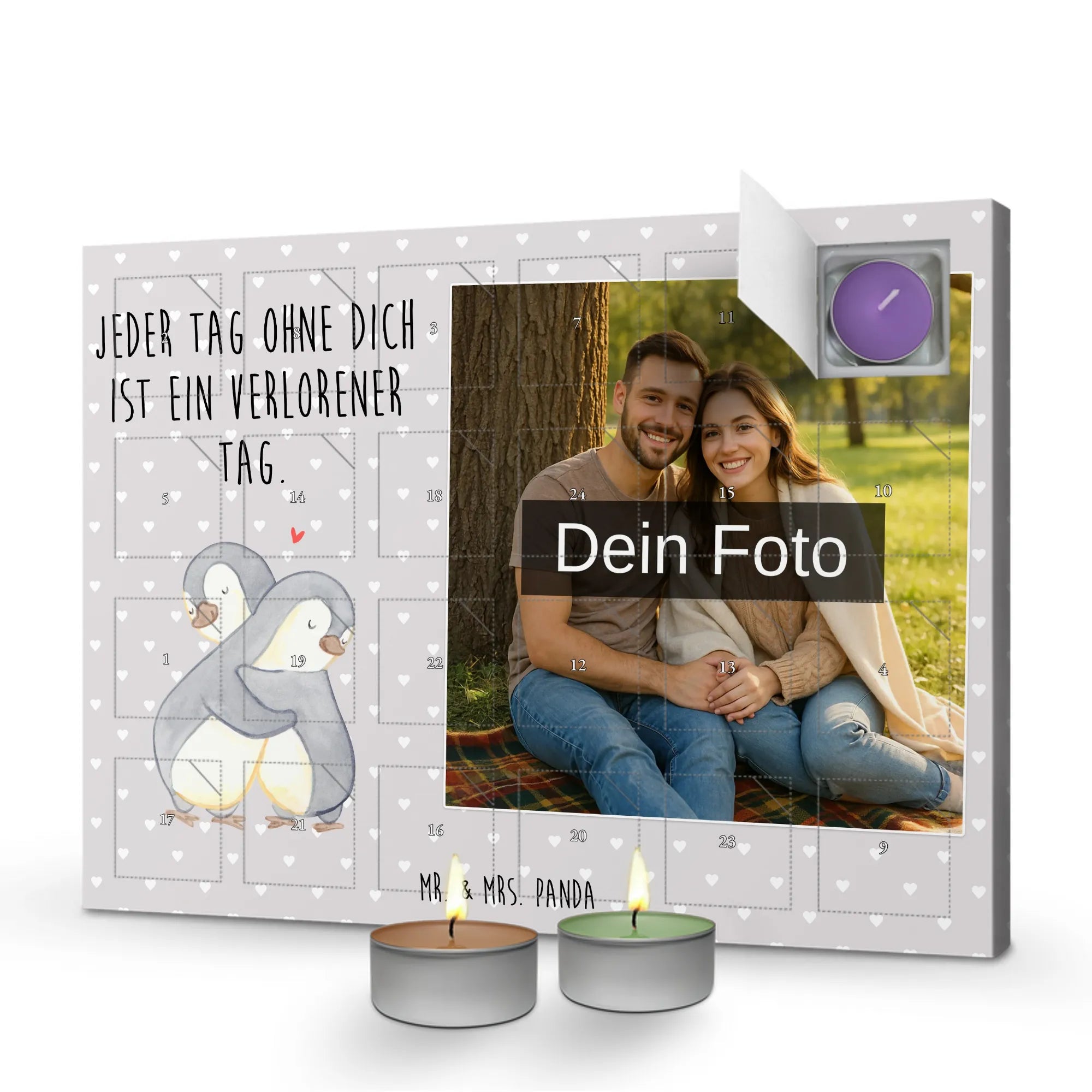 Überrasche deinen Partner mit unserem personalisierten Duftkerzen Foto Adventskalender "Pinguine Kuscheln" aus der liebevollen Kollektion von Mr. & Mrs. Panda. Dieses einzigartige Geschenk ist nicht nur dekorativ, sondern auch eine wunderbare Möglichkeit, die Vorfreude auf die Feiertage zu zelebrieren.