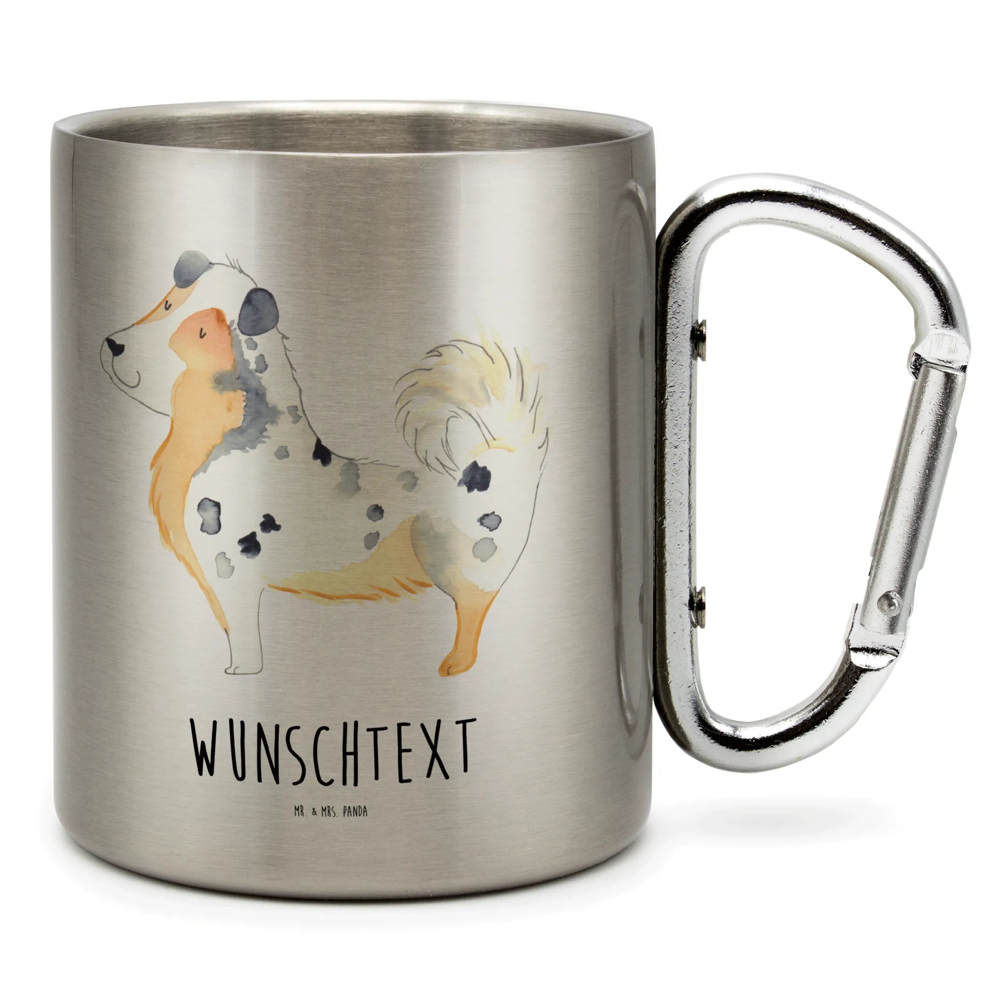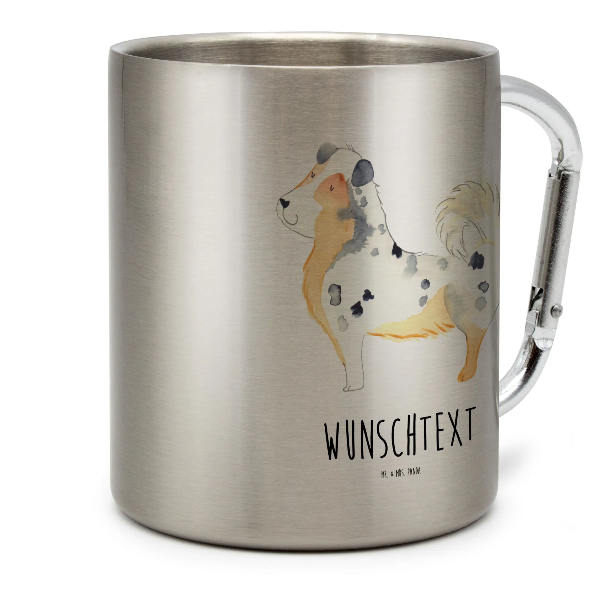 Personalisierter Edelstahlbecher Australien Shepherd – Mr. & Mrs. Panda
