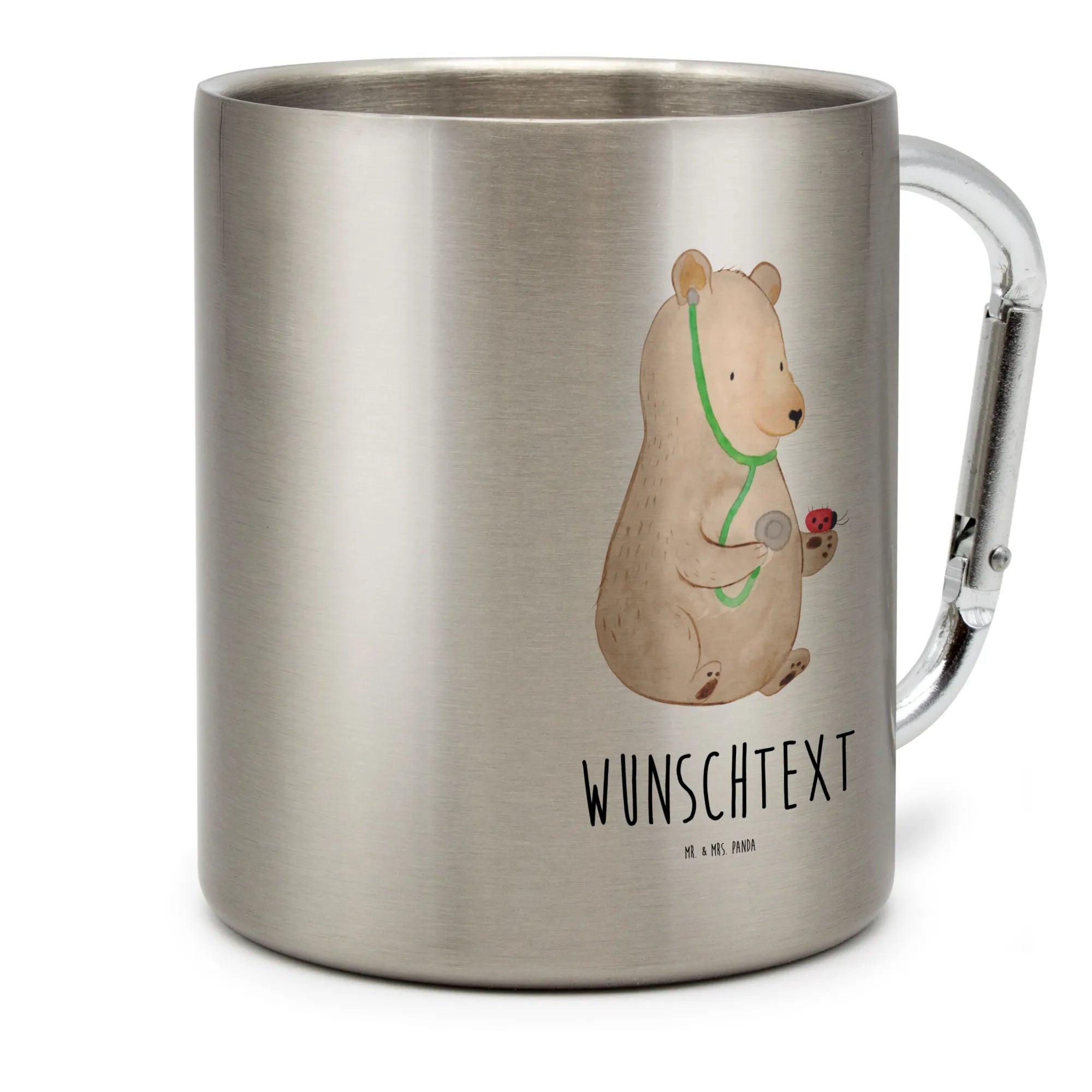 Die personalisierte Edelstahltasse mit dem süßen Motiv "Bär Arzt" von Mr. & Mrs. Panda ist das perfekte Geschenk für alle, die im medizinischen Bereich tätig sind. Ob als Arzt, Ärztin, Doktor oder Professor - dieser Becher vereint Nützlichkeit mit einer liebevollen Note.