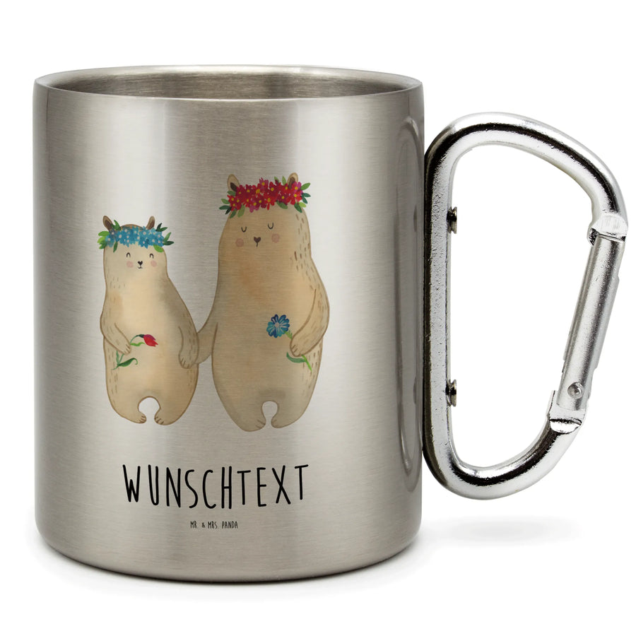 Personalisierter Edelstahlbecher Bären mit Blumenkranz