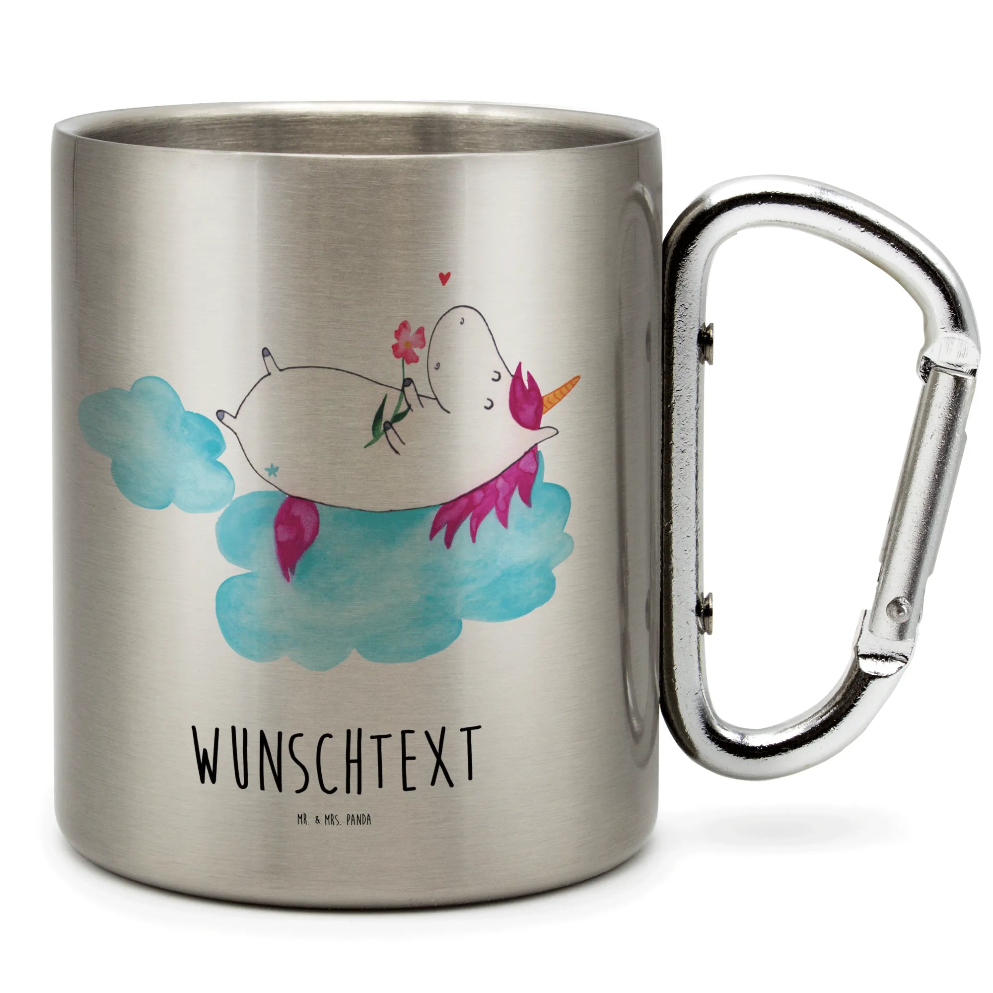 Personalisierter Edelstahlbecher Einhorn verliebt auf Wolke