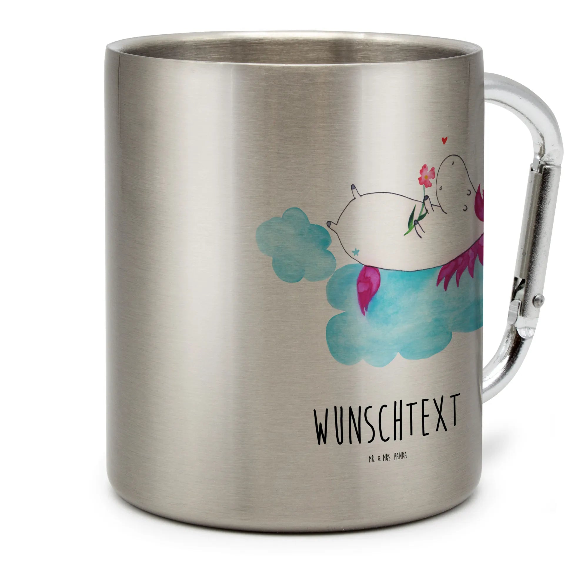 Der personalisierte Edelstahlbecher von Mr. & Mrs. Panda ist perfekt für Abenteuerlustige! Mit 90 mm Durchmesser und 80 mm Höhe bietet er Platz für 330 ml deiner liebsten Getränke. Aus hochwertigem, rostfreiem Edelstahl hergestellt, ist dieser Becher sowohl langlebig als auch praktisch. Dein individuelles Design macht ihn zu einem tollen Geschenk, das auf jeder Reise ein echter Hingucker ist. Ob beim Wandern, im Garten oder beim Picknick, dieser Becher hält deine Getränke ideal temperiert, sodass du immer die perfekte Erfrischung hast. Dank seines geringen Gewichts von 145 g und dem integrierten Karabinerhaken lässt er sich problemlos an deinem Rucksack befestigen. Für die Pflege empfehlen wir eine sanfte Handwäsche, um die schöne Druckqualität zu erhalten. Liebevoll gestaltet und mit einem persönlichen Touch, wird dieser Becher garantiert zu einem allzeit beliebten Begleiter in deinem Leben!