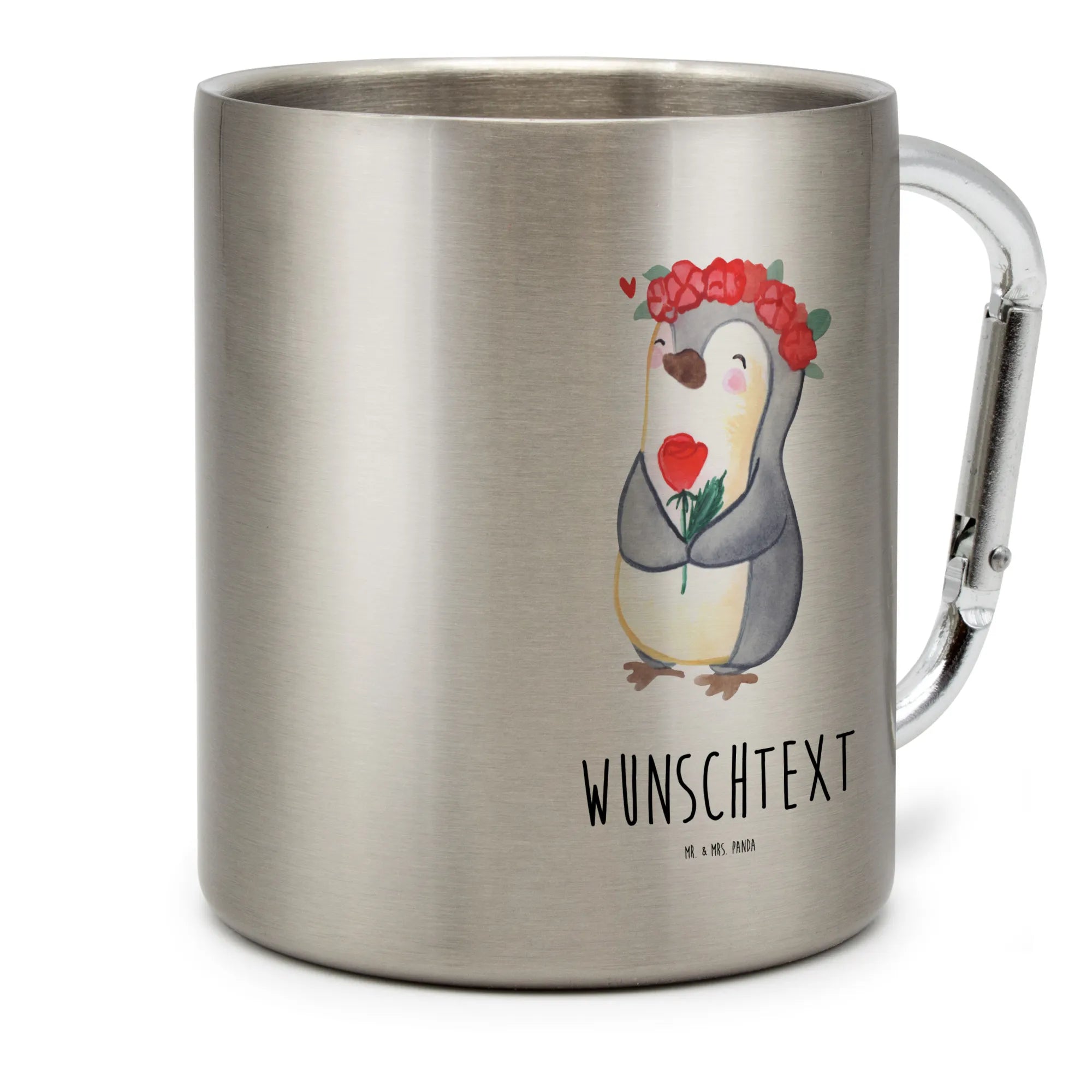 Hol dir den personalisierten Edelstahlbecher von Mr. & Mrs. Panda! Egal ob beim Camping, auf Wanderungen oder einfach im gemütlichen Garten, dieser Becher ist ein Must-Have für jeden Getränkeliebhaber. Mit einem Durchmesser von 90 mm und einer Höhe von 80 mm ist er ideal für 330 ml deiner Lieblingsdrinks – heiß oder kalt. Der rostfreie Edelstahl sorgt dafür, dass deine Getränke immer perfekt temperiert bleiben. Außerdem kannst du ihn mit deinem Wunschtext oder Namen personalisieren, was ihn zu einem einzigartigen Geschenk macht! Mit nur 145 g ist dieser Becher super leicht und lässt sich dank des integrierten Karabinerhakens mühelos an deinem Rucksack befestigen. Bitte beachte, dass der Becher nicht spülmaschinenfest ist, also wasche ihn liebevoll von Hand, um die schöne Druckqualität zu bewahren. Ein wirklich praktisches und individuelles Accessoire für jede Gelegenheit!