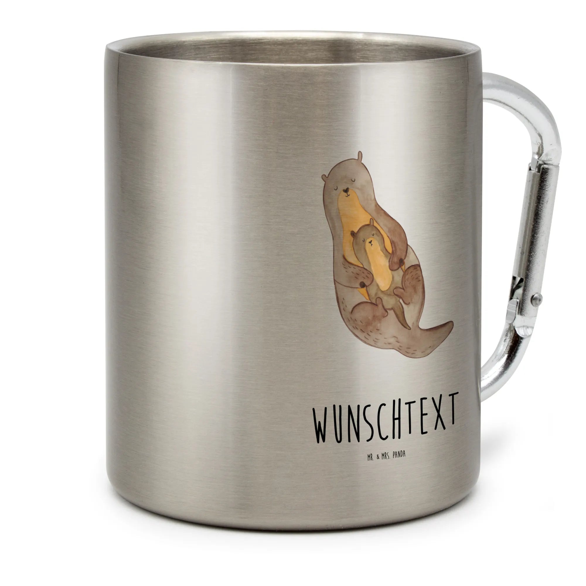 Personalisierter Edelstahlbecher Otter mit Kind