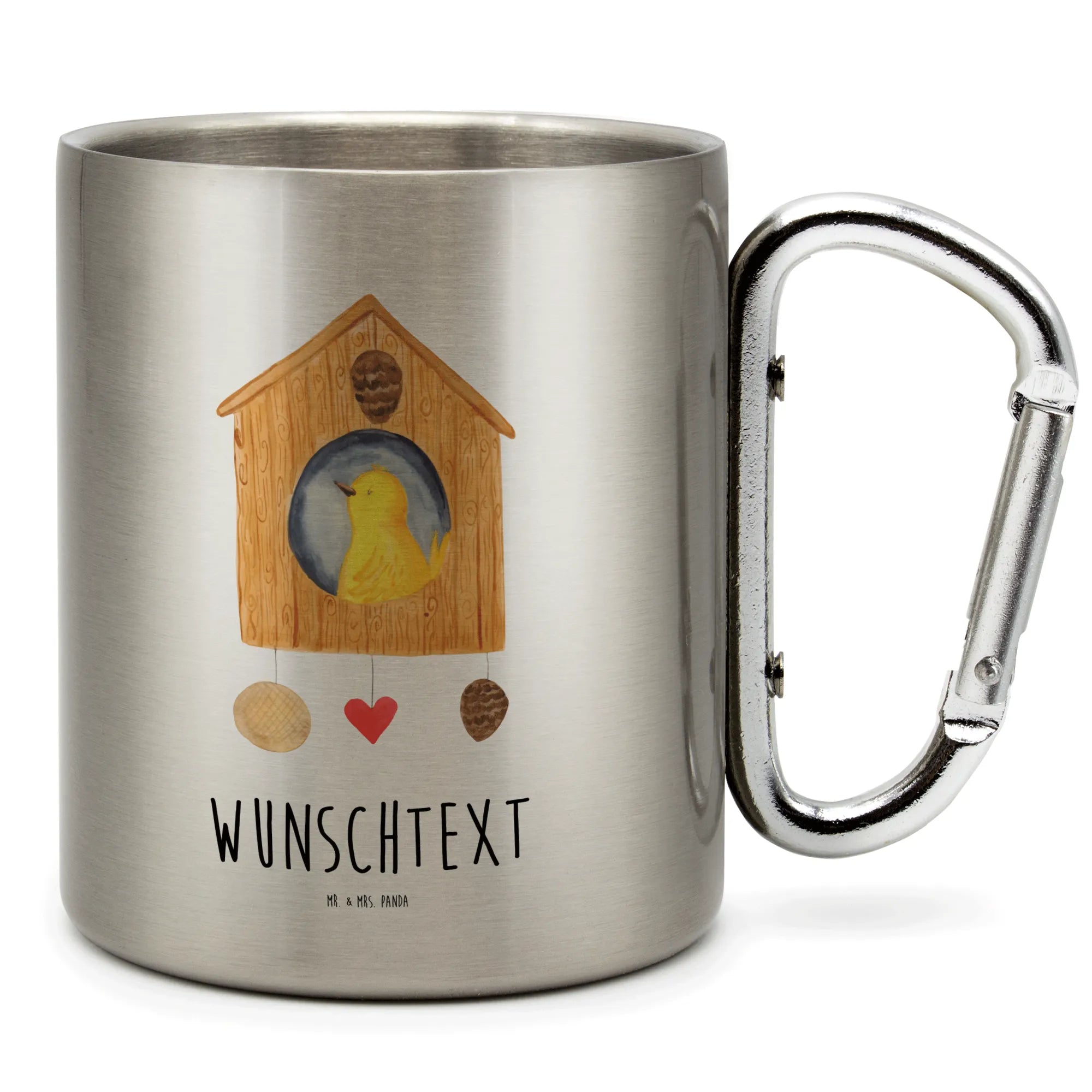 Personalisierter Edelstahlbecher Vogelhaus sweet Home