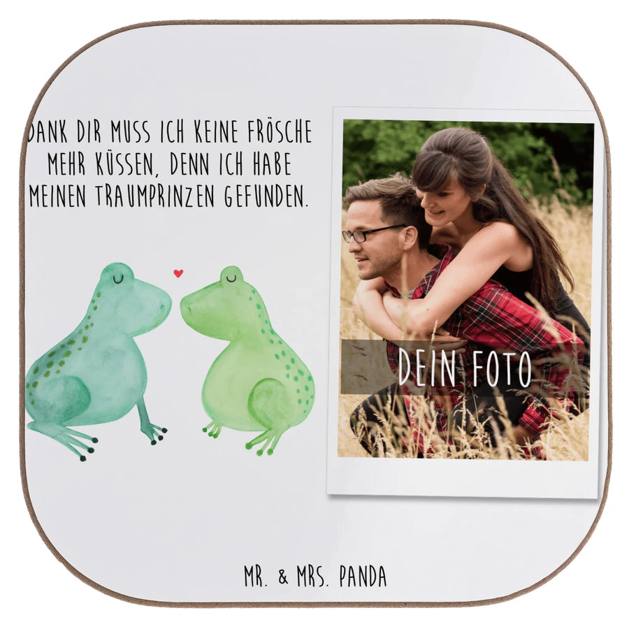 Der personalisierte Foto Untersetzer "Frosch Liebe" von Mr. & Mrs. Panda ist ein bezauberndes Geschenk für alle, die das Glück der Liebe feiern möchten. Mit seinem charmanten Design, das zwei niedliche Frösche zeigt, die sich verliebt gegenüberstehen, und einem kleinen roten Herz, wird er zum idealen Liebesbeweis.