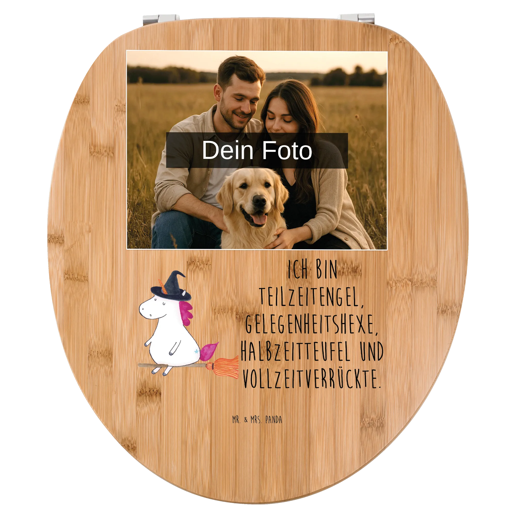 Personalisierter Foto WC Sitz Motiv Einhorn Hexe - Bambus