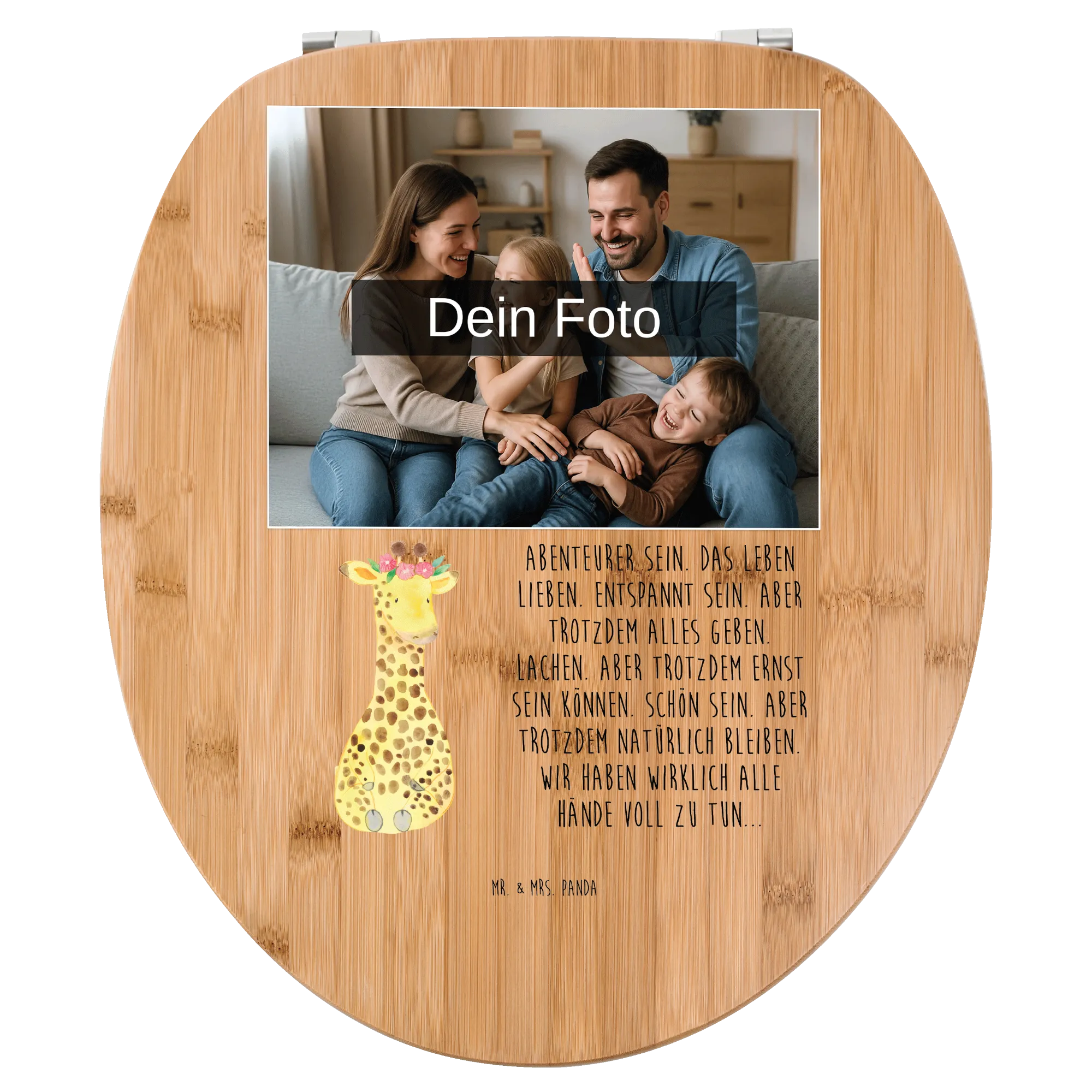 Personalisierter Foto WC Sitz Motiv Giraffe Blumenkranz - Bambus