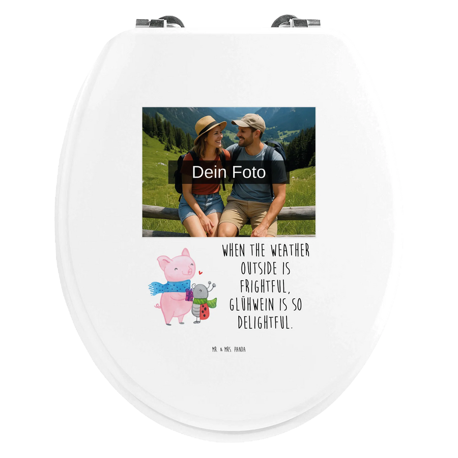 Personalisierter Foto WC Sitz Motiv Glühschwein Smörle - Hartfaser Holzkern Weiß