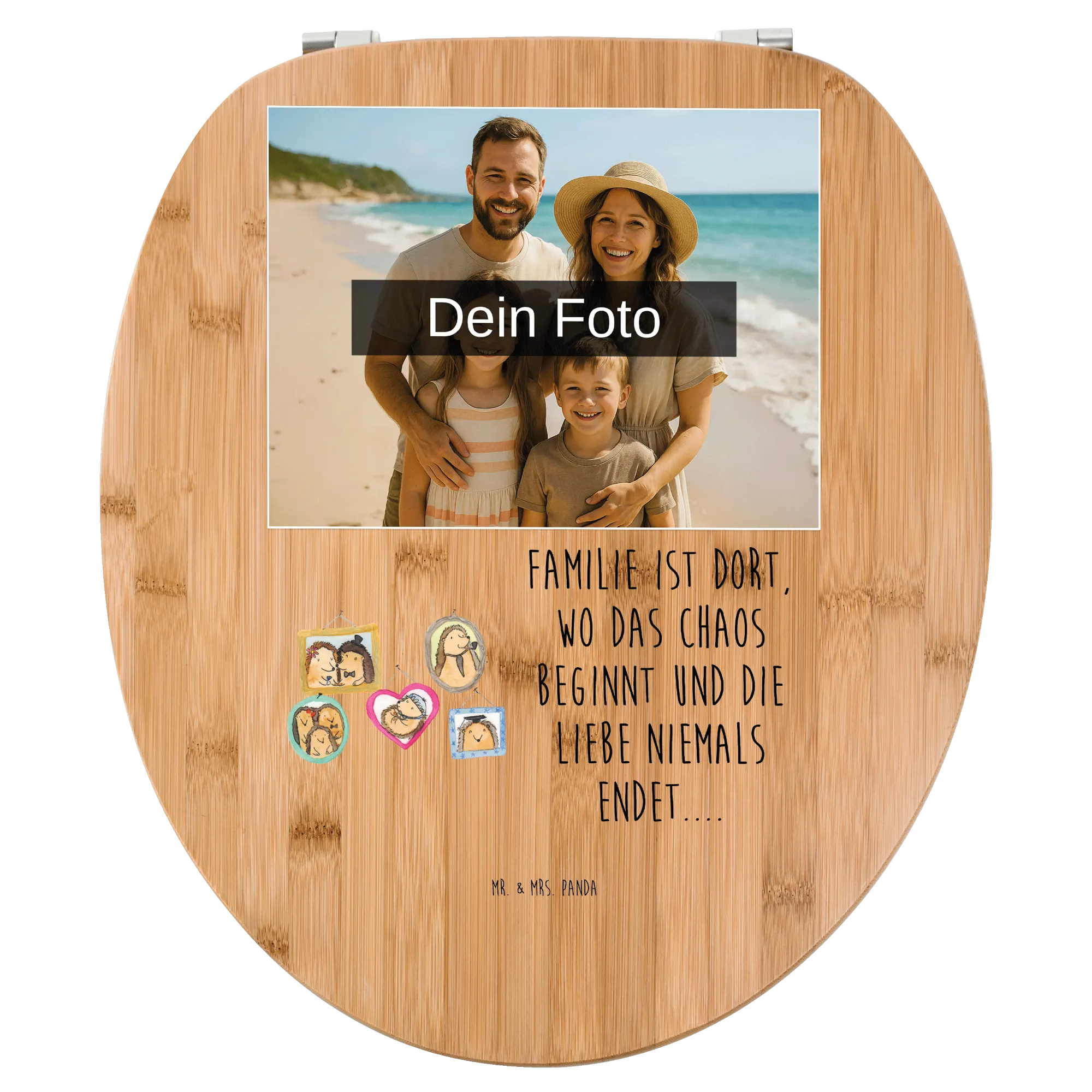 Erlebe die perfekte Kombination aus Stil und Komfort mit unserem personalisierten Foto WC Sitz Motiv von Mr. & Mrs. Panda! Mit den Maßen von 430 mm x 370 mm x 50 mm kommt dieser einzigartige Toilettensitz in zwei Varianten: hochwertigem Bambus Holz (braun) oder edlem MDF Holz (weiß). Der liebevoll gestaltete Sitz wird mit fröhlichen Motiven und Sprüchen bedruckt, die deinem Badezimmer eine besondere Note verleihen. Und das Beste? Du kannst ihn ganz nach deinem Geschmack mit deinem Wunschfoto gestalten! Achte darauf, dass das hochgeladene Bild in hoher Auflösung ist, um eine optimale Druckqualität zu garantieren. Achte darauf, dass der Bildausschnitt stimmt, damit alles gut zur Geltung kommt. Passend für alle Euro-WC-Becken und inkl. Montageset, bietet dieser WC Sitz nicht nur hohen Sitzkomfort, sondern macht dein Bad auch zu einem echten Hingucker. Vor allem an kalten Tagen kannst du den angenehmen Komfort genießen. Pflege ihn einfach mit einem feuchten Tuch und milder Seife – so bleibt er lange schön! Mit einem langlebigen UV-Druck bleibt dein persönliches Motiv immer strahlend! Leg dir jetzt diesen besonderen Toilettensitz zu und gestalte dein Bad nach deinen Vorstellungen!