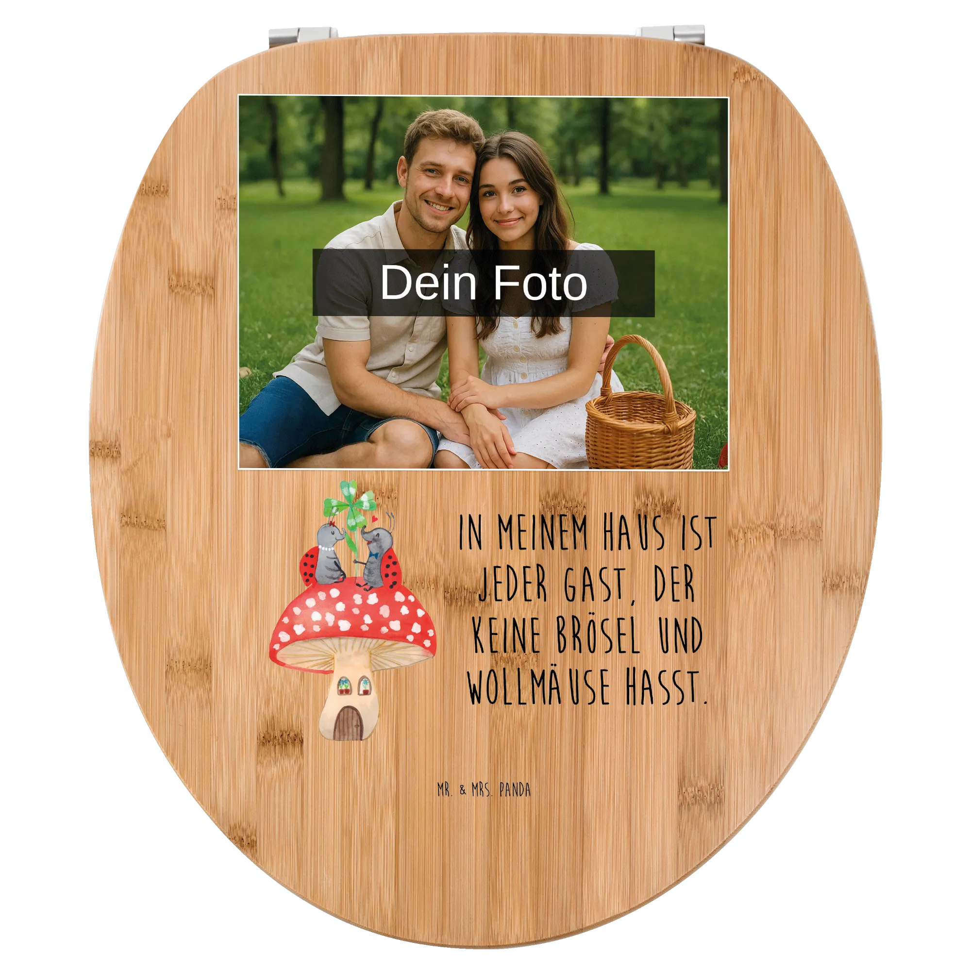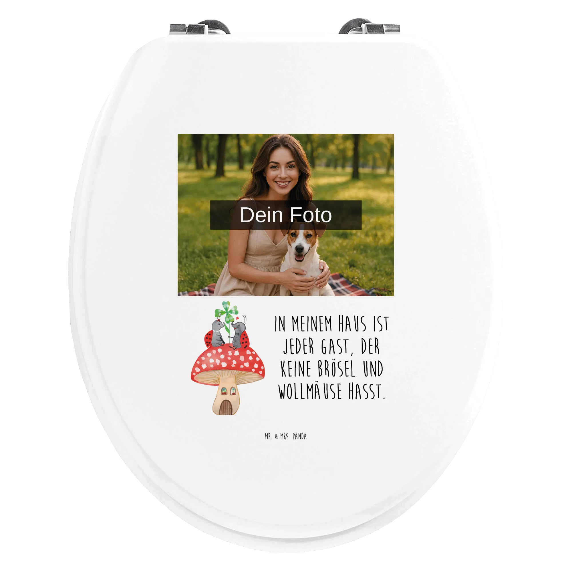 Personalisierter Foto WC Sitz Motiv Marienkäfer Fliegenpilz - Hartfaser Holzkern Weiß