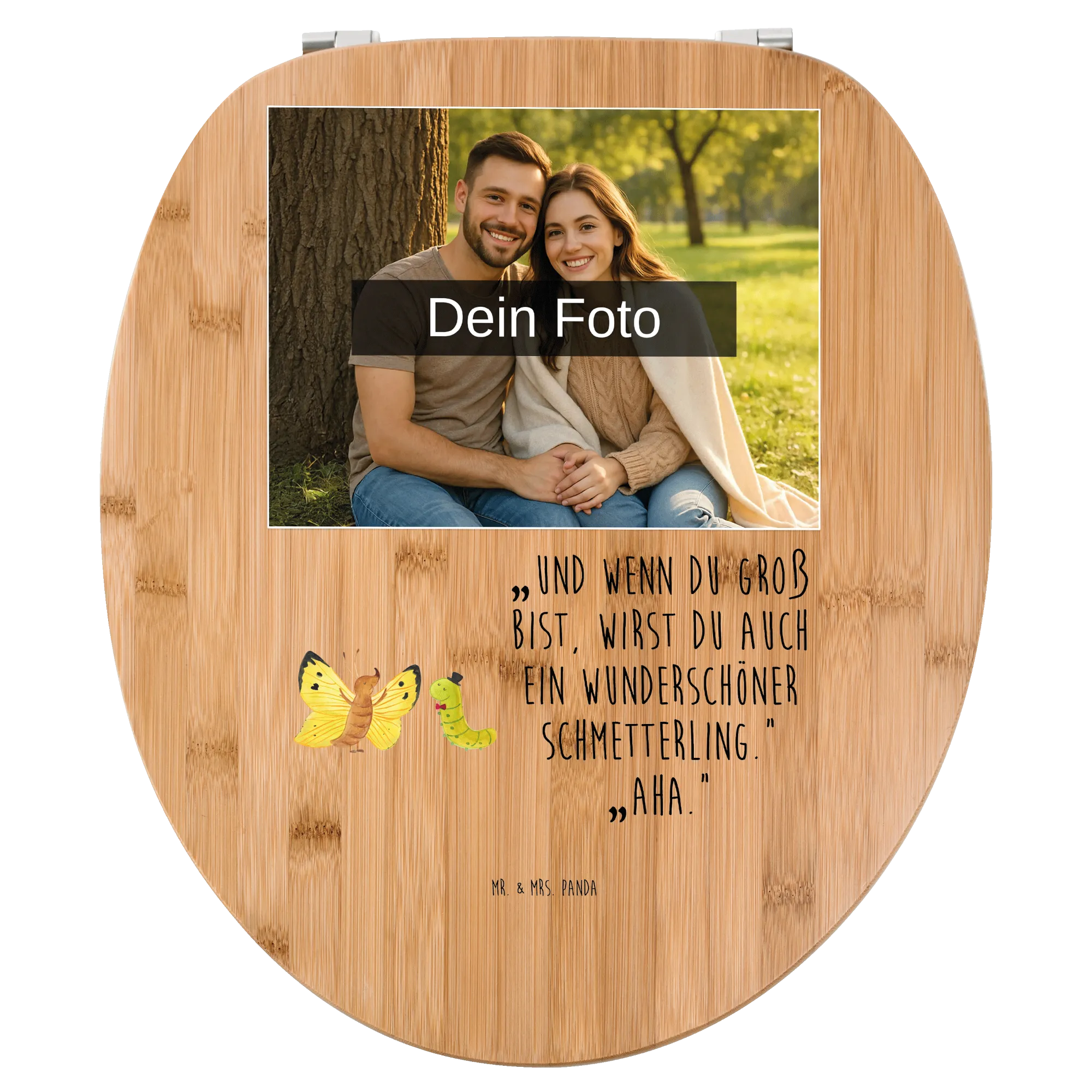 Personalisierter Foto WC Sitz Motiv Raupe Schmetterling - Hartfaser Holzkern Weiß