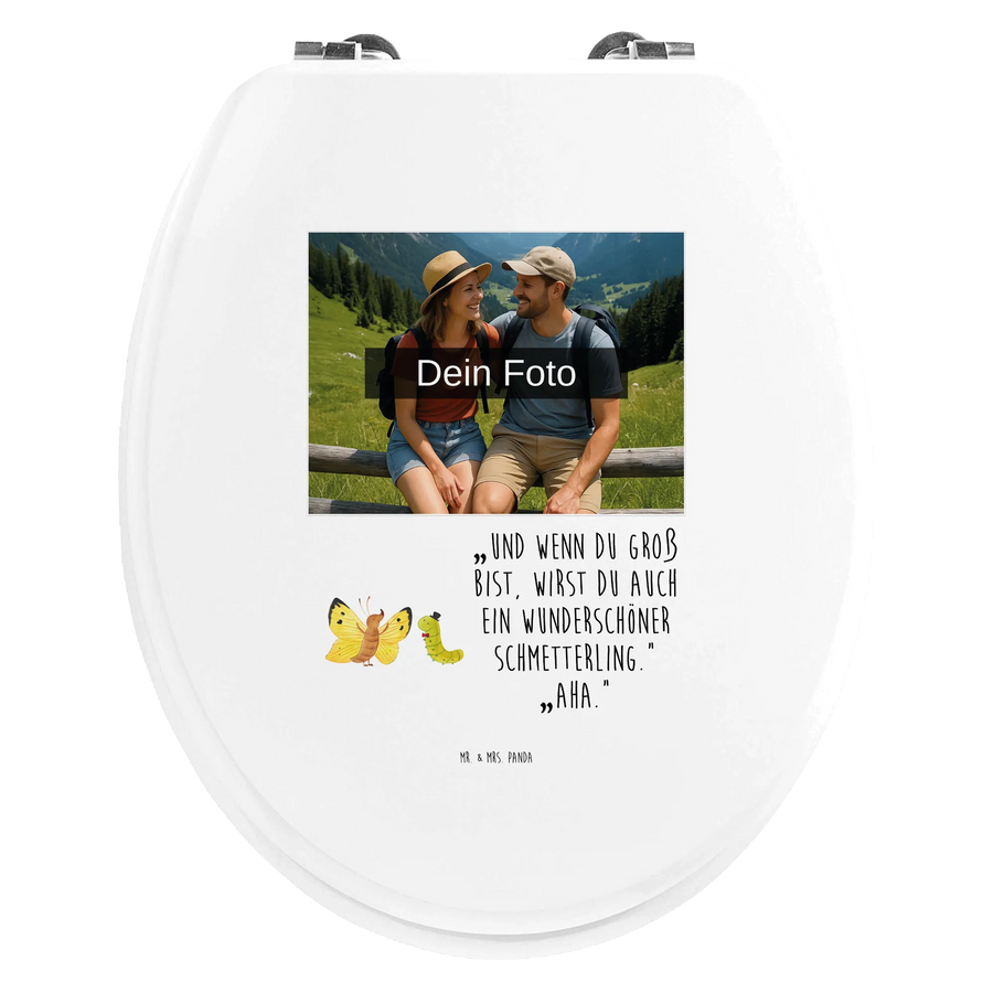 Mach dein Badezimmer zu einem besonderen Ort mit unserem personalisierten Foto WC Sitz Motiv! Der Sitz hat die Maße von 430 mm x 370 mm x 50 mm und ist wahlweise aus hochwertigem Bambus Holz (braun) oder robustem MDF Holz (weiß) gefertigt. Dieser liebevoll gestaltete Toilettensitz wird mit süßen Motiven und zauberhaften Sprüchen von Mr. & Mrs. Panda bedruckt. Lass deiner Kreativität freien Lauf und personalisiere ihn mit deinem eigenen Wunschfoto! Achte darauf, dass das hochgeladene Motiv hochauflösend ist, damit der Druck klar und lebendig wird. Denk daran, den richtigen Bildausschnitt zu wählen, damit keine wichtigen Details verloren gehen. Dieser WC Sitz passt auf alle Euro-WC-Becken und ist mit einem einfachen Montageset ausgestattet. Er bietet nicht nur hohen Sitzkomfort, sondern sorgt dank seiner speziellen Eigenschaften für ein angenehmes Sitzgefühl, selbst an kalten Tagen. Mit einem süßen Motiv bringst du mehr Lebensfreude in dein Badezimmer. Pflege dein neues Schmuckstück ganz einfach mit einem feuchten Tuch und handelsüblicher Seife, ohne aggressive Putzmittel. Der hochqualitative UV-Druck sorgt dafür, dass das Motiv lange strahlend bleibt. Hol dir jetzt diesen besonderen Toilettensitz und mach dein Bad einzigartig!