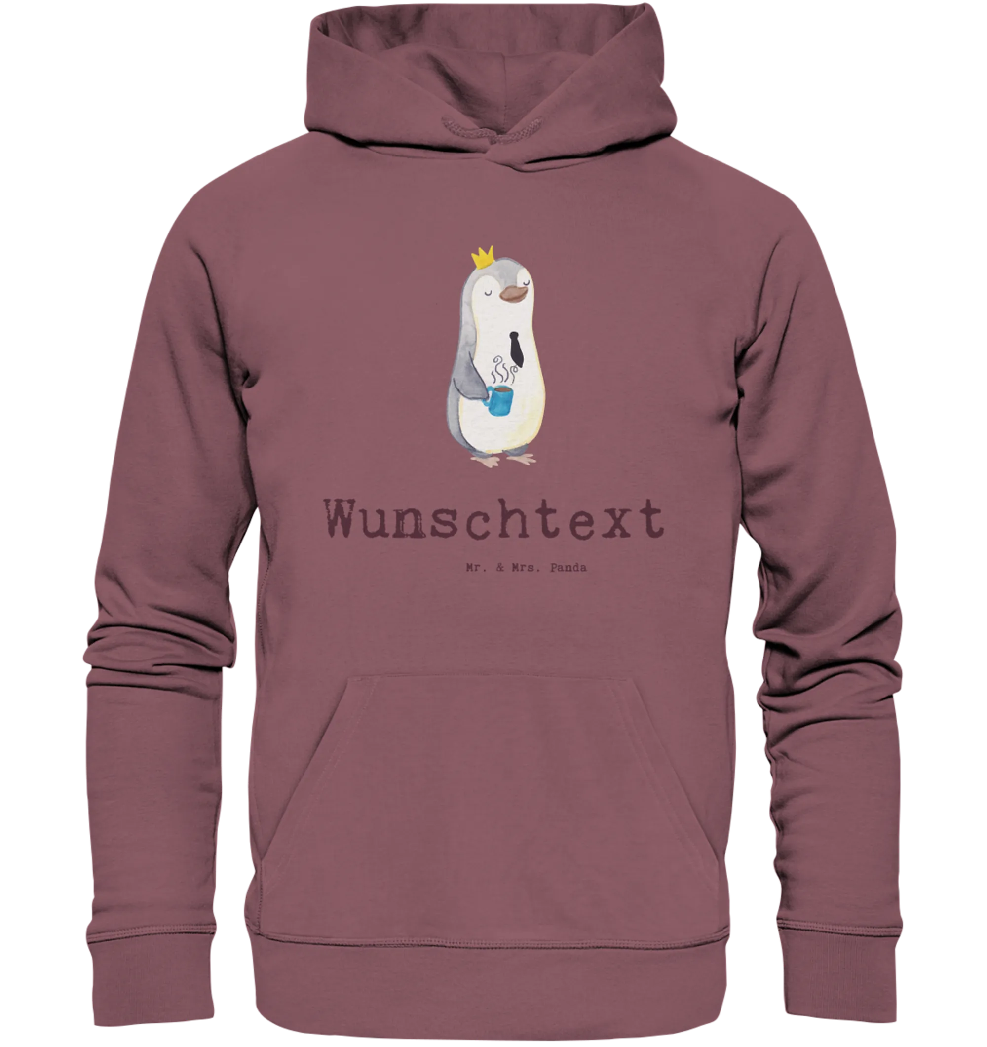 Mit seinem charmanten Pinguin-Motiv, der Krone auf dem Kopf und der Kaffeetasse in der Hand, ist er ein besonderer Begleiter für die Arbeit und die Freizeit. Aber das Beste daran? Du kannst den Hoodie mit deinem eigenen Wunschtext oder Namen personalisieren! So kreierst du ein einzigartiges Geschenk, das von Herzen kommt und garantiert in Erinnerung bleibt.