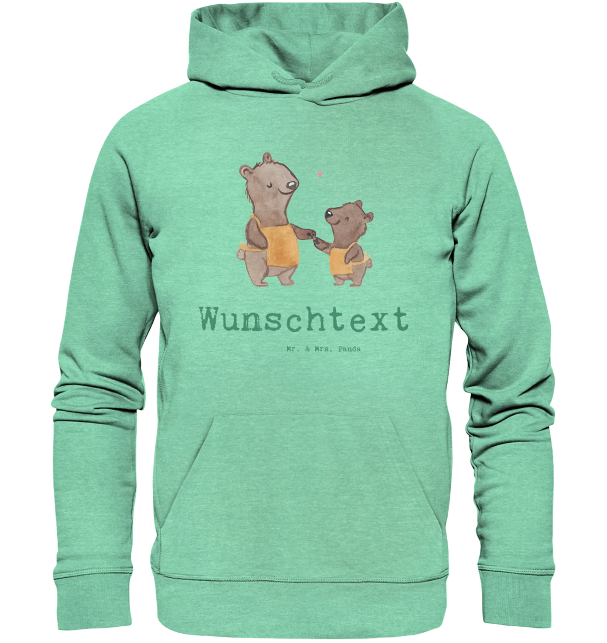 Der Hoodie, gefertigt aus 85 % hochwertiger Bio-Baumwolle und 15 % recyceltem Polyester, bietet nicht nur höchsten Komfort, sondern auch ein gutes Gewissen, denn er ist nachhaltig produziert. Mit einem einzigartigen Design, das einen süßen Bären zeigt, der einen kleineren Bären an der Hand hält, und dem Spruch "Du bist nur ein halber Mensch, wenn du kein Arbeitserzieher bist", macht dieser Hoodie jedes Outfit zu etwas ganz Besonderem. Egal, ob zur Arbeit, zum Studium oder einfach zum Chillen – mit diesem Hoodie machst du immer eine gute Figur!