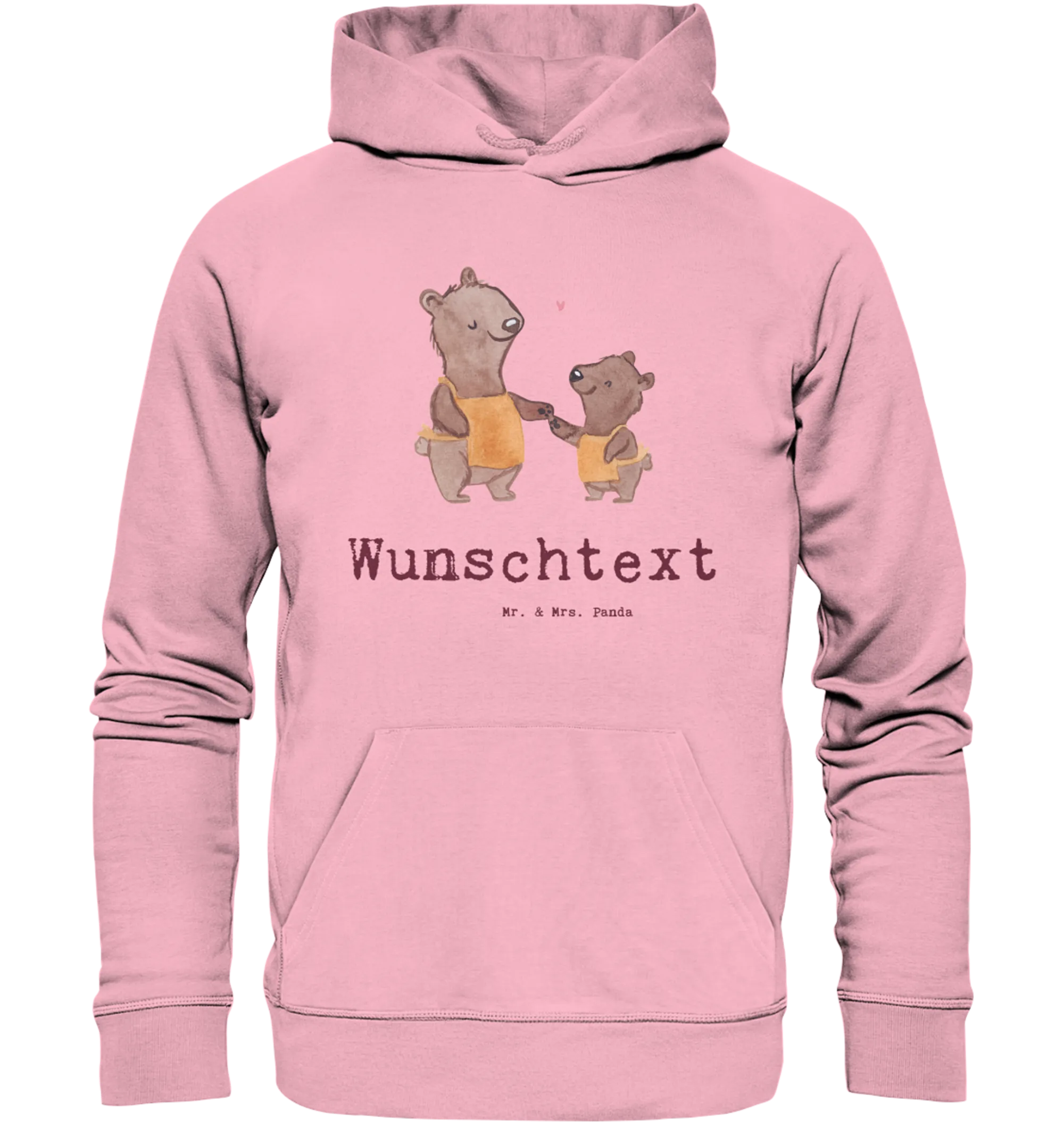 Dieser wunderschöne Kapuzenpullover besticht durch sein einzigartiges Design, das mit viel Liebe und Sorgfalt erstellt wurde. Das Motiv zeigt einen süßen Bären, der stolz seine Arbeitsschürze trägt, während er an der Hand eines kleineren Bären hält, der ebenfalls in seiner Schürze strahlt.