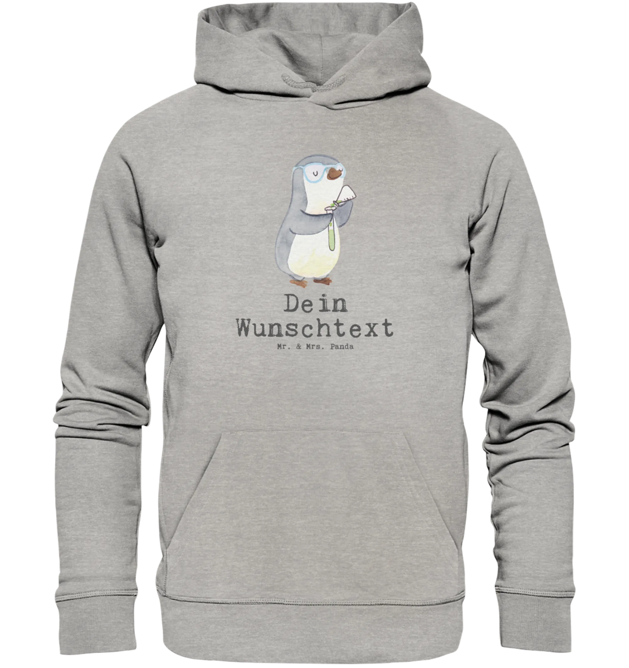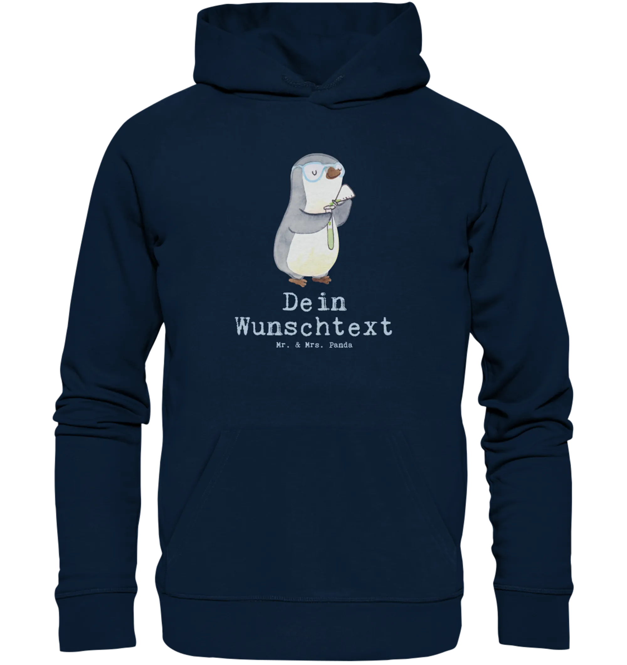 Suchst du ein persönliches Geschenk für Chemiker*innen? Unser personalisierter Organic Hoodie „Chemiker mit Herz“ aus der Berufe-Kollektion von Mr. & Mrs. Panda ist genau das: liebevoll gezeichnet, nachhaltig produziert und mit deinem Wunschname individualisierbar. Das niedliche Pinguin-Motiv mit Reagenzglas und der freche Spruch „Du bist nur ein halber Mensch, wenn du kein Chemiker bist.“ bringen im Labor und in der Uni garantiert ein Lächeln.