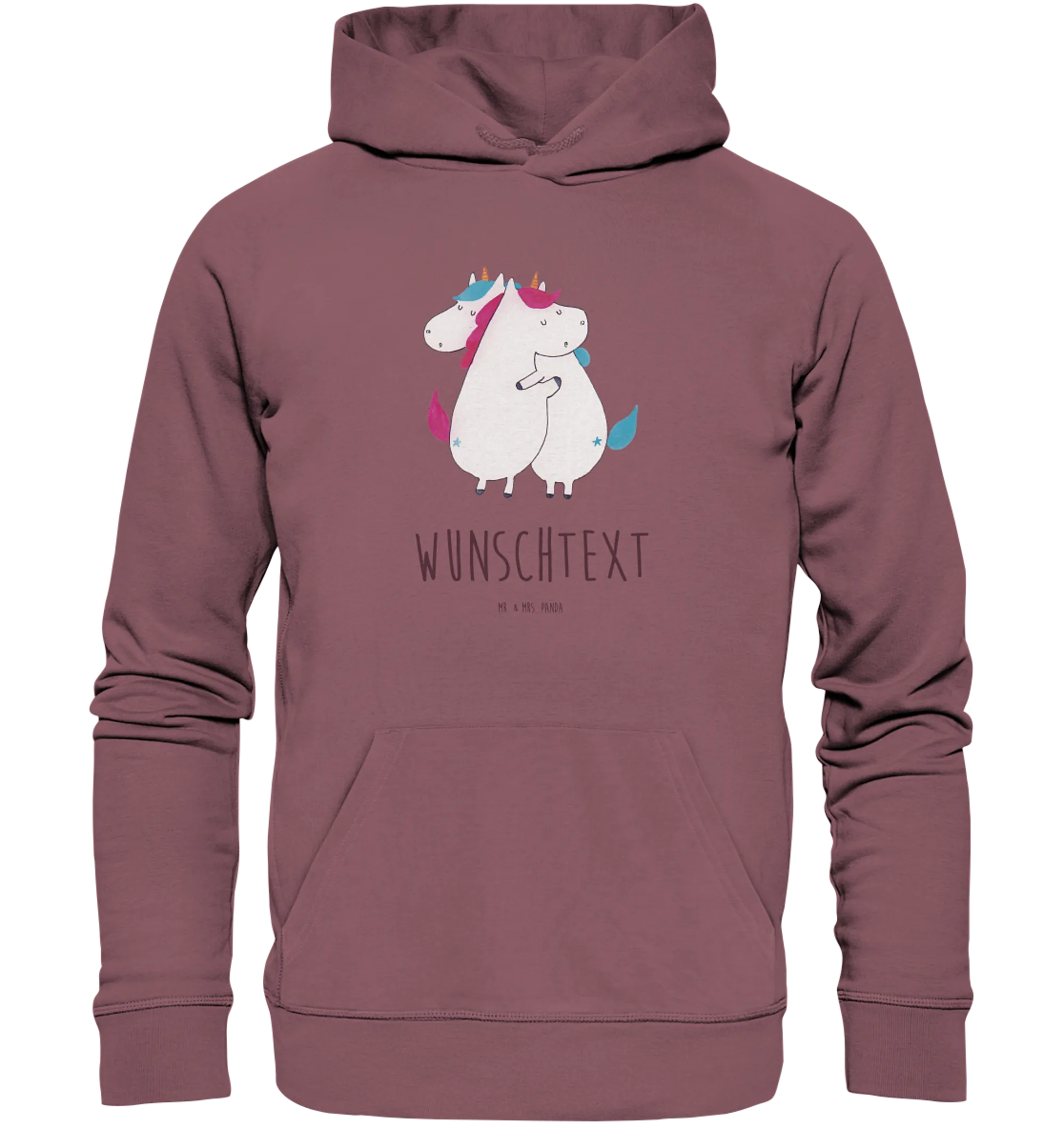 Der personalisierte Hoodie "Einhörner Umarmen" aus der zauberhaften Einhorn-Kollektion von Mr. & Mrs. Panda ist das perfekte Geschenk für all die besonderen Menschen in deinem Leben. Ob für deine Schwester, beste Freundin oder die Familie – dieser Hoodie bringt jeden zum Lächeln! Mit seinem warmen, weichen Material aus 85 % Bio-Baumwolle und 15 % recyceltem Polyester, wird er zum idealen Begleiter an kalten Tagen. Der Hoodie hat eine normale Passform, lange Ärmel und eine gebürstete Innenseite, die für ein herrliches Tragegefühl sorgt.