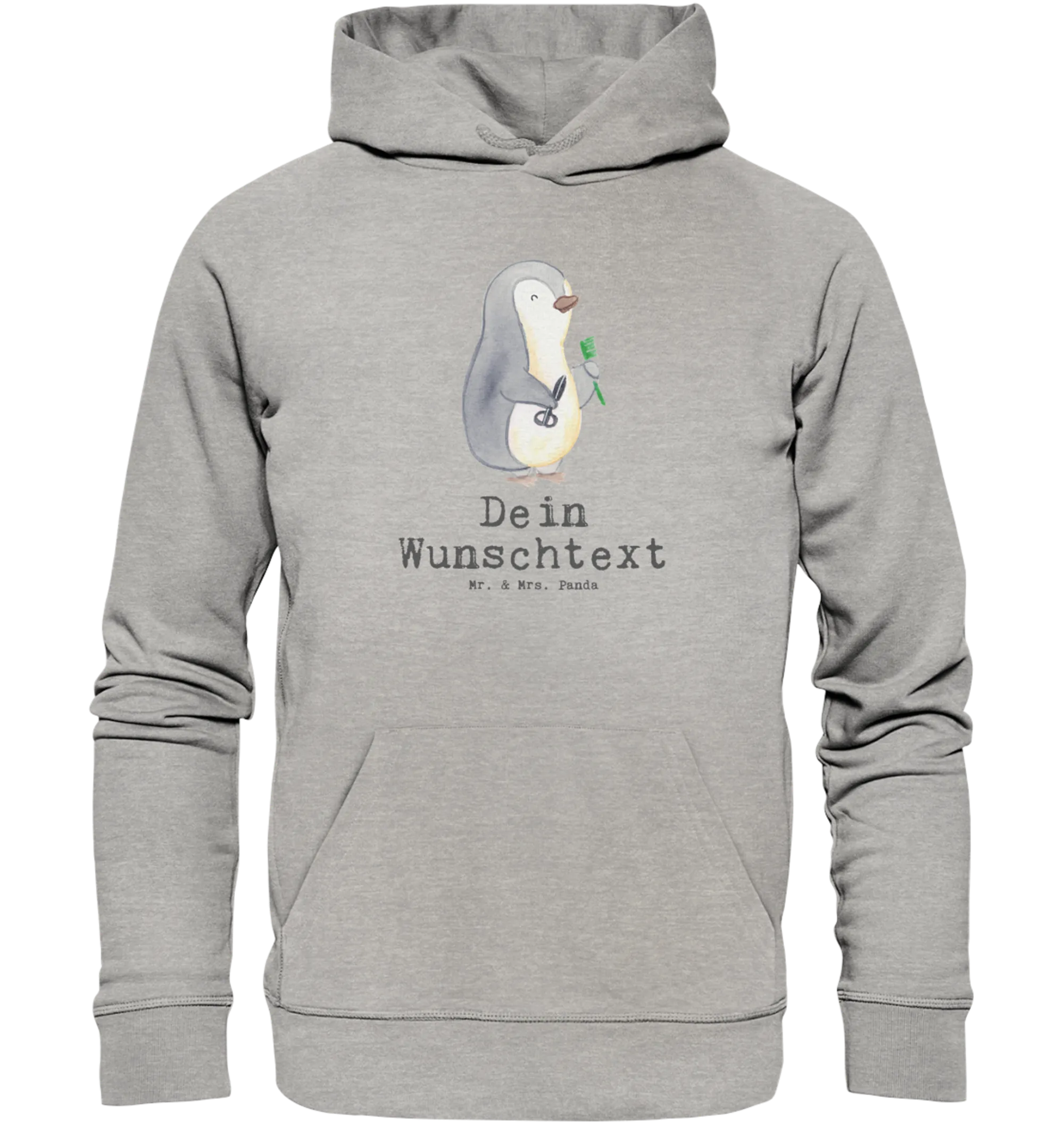 Der personalisierte Hoodie 'Friseur mit Herz' von Mr. & Mrs. Panda ist das perfekte Geschenk für jeden Frisör oder Haarstylisten. Hergestellt aus hochwertiger Bio-Baumwolle, bietet dieser Hoodie sowohl Komfort als auch Stil. Mit einem wundervoll niedlichen Motiv eines Pinguins, der Friseur ist, und dem herzlichen Spruch 'Du bist nur ein halber Mensch, wenn du kein Friseur bist', wird dieser Kapuzenpullover zu einem echten Hingucker und bringt gleichzeitig ein Lächeln ins Gesicht!