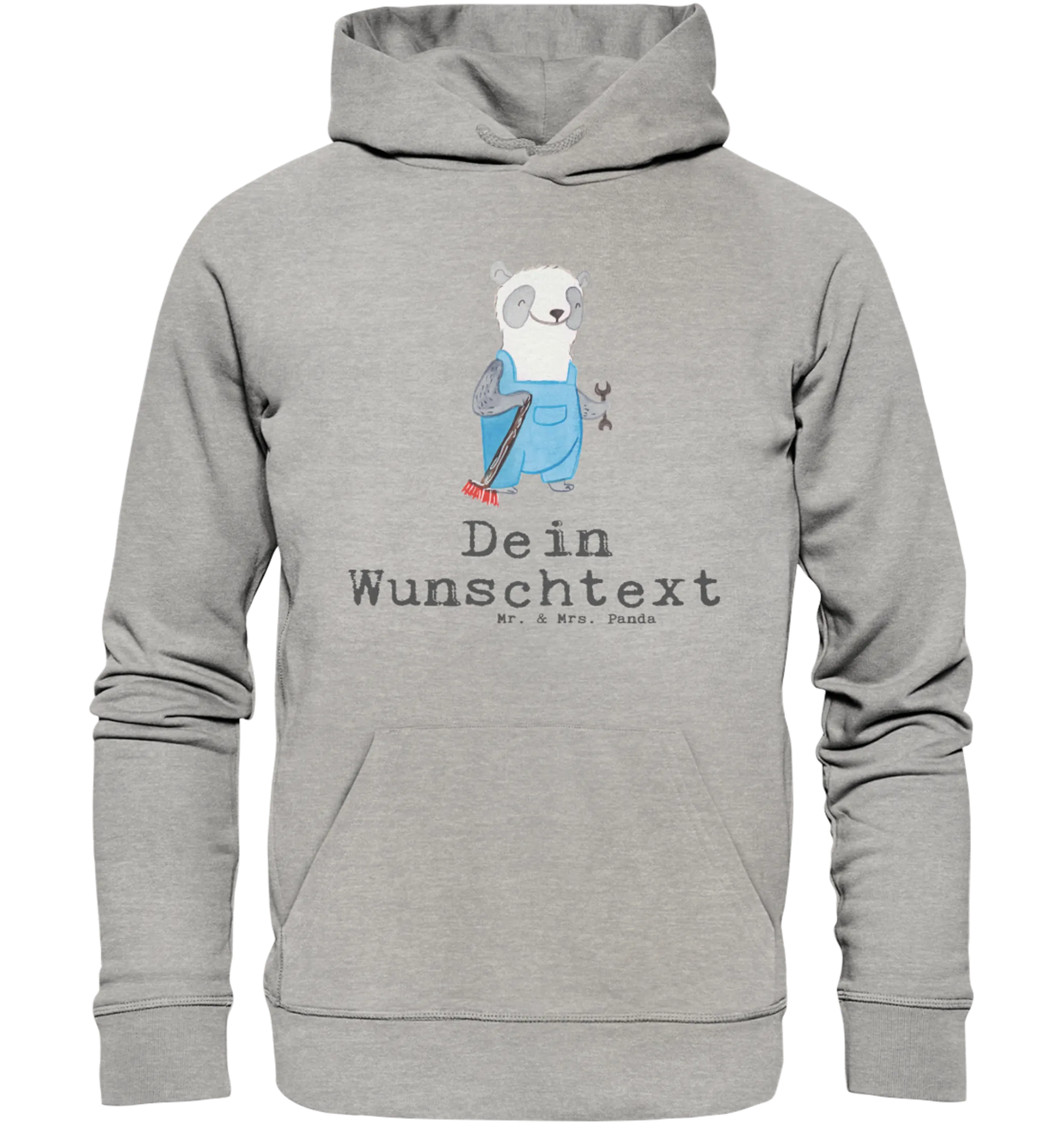 Der personalisierte Hoodie "Hausmeister mit Herz" von Mr. & Mrs. Panda ist das perfekte Geschenk für alle, die Wert auf Individualität und eine liebevolle Botschaft legen. Dieser Hoodie ist nicht nur superbequem, sondern auch einzigartig, denn er kann mit deinem Wunschnamen oder Text personalisiert werden. Der Hoodie ist aus 85 % Bio-Baumwolle und 15 % recyceltem Polyester gefertigt, wodurch er nicht nur umweltfreundlich, sondern auch angenehm weich auf der Haut ist. Mit einem süßen Panda im Blaumann, der einen Besen in der Hand hält, sorgt das Design definitiv für ein Lächeln!