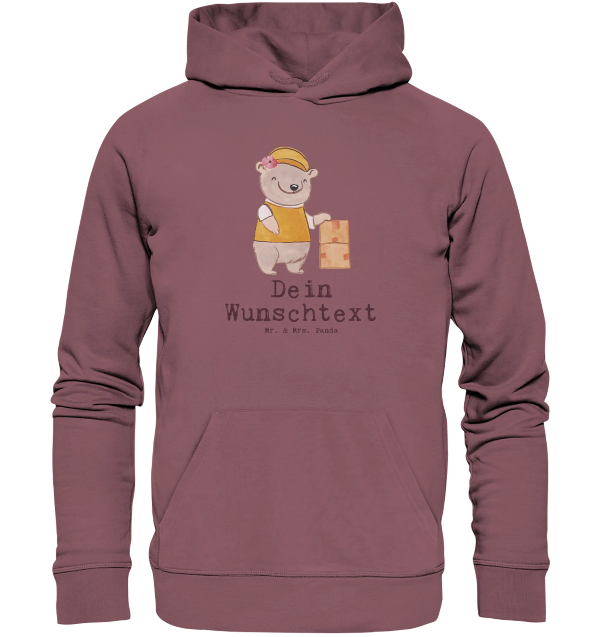Personalisierter Organic Hoodie „Lieferdienstmitarbeiterin mit Herz“ von Mr. & Mrs. Panda