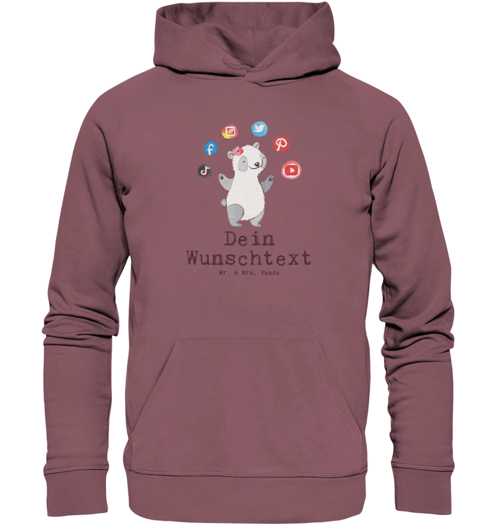 Der Hoodie wird aus angenehm weicher Bio-Baumwolle gefertigt und bietet höchsten Tragekomfort. Mit seinem einzigartigen Motiv, das einen süßen Panda zeigt, der mit Social Media Icons jongliert, spricht er die Kreativität und Lebensfreude jedes Marketing-Profis an.