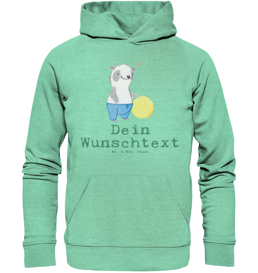 Der personalisierte Hoodie "Physiotherapeut mit Herz" von Mr. & Mrs. Panda ist die perfekte Geschenkidee für alle Physiotherapeuten und Physiotherapeutinnen. Hergestellt aus 85 % hochwertiger Bio-Baumwolle, fühlt sich dieser Kapuzenpullover nicht nur wunderbar weich auf der Haut an, er ist auch umweltfreundlich, da er aus recyceltem Polyester besteht. Mit einem charmanten Motiv, das einen niedlichen Panda zeigt, der einen Gymnastikball hält, und dem Spruch "Du bist nur ein halber Mensch, wenn du kein Physiotherapeut bist", ist dieser Hoodie ein echter Hingucker.