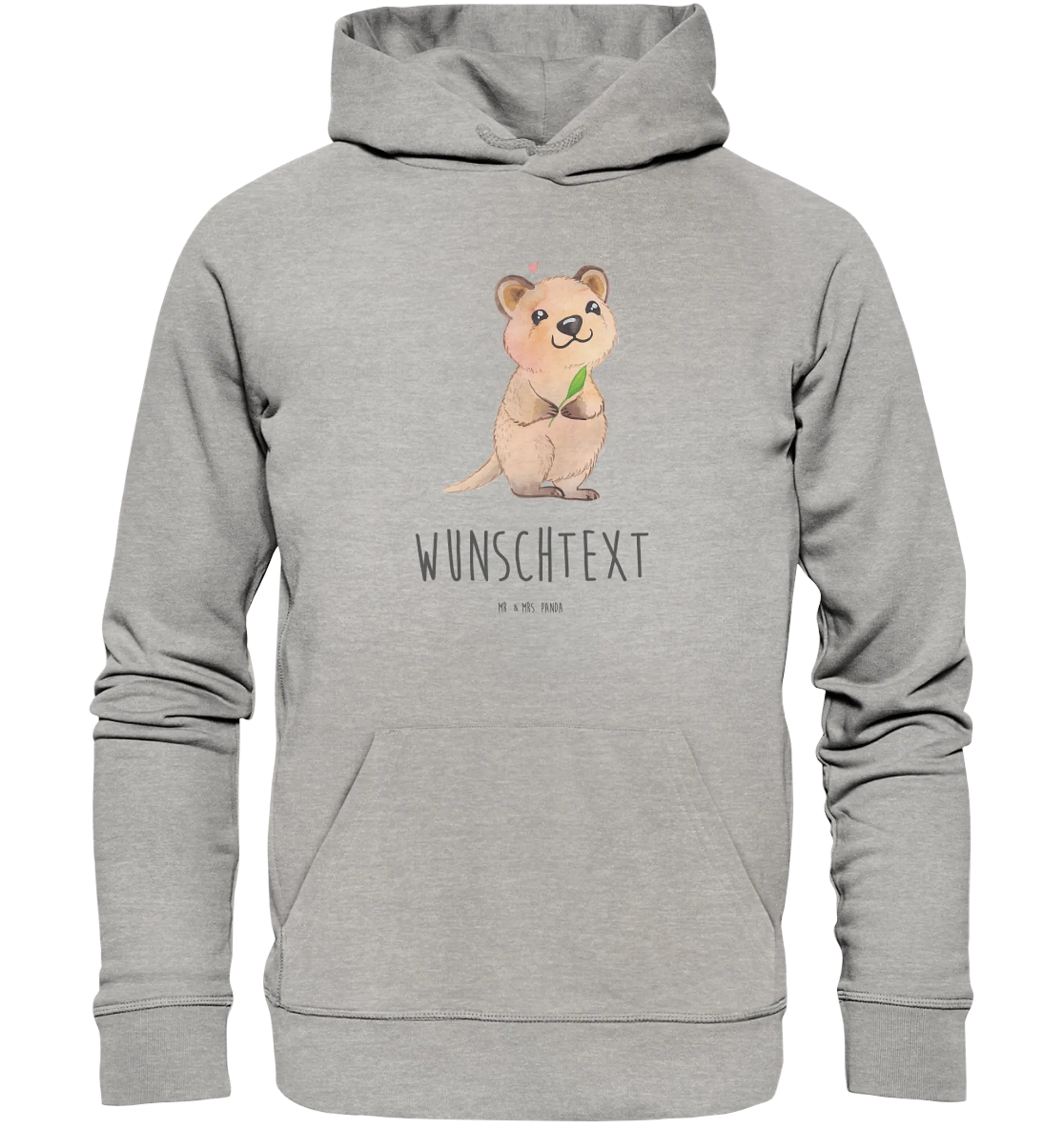 Du suchst nach dem perfekten Geschenk für Freunde oder Familie? Dann ist der personalisierte Hoodie 'Quokka Happy' aus der beliebten Small World Kollektion von Mr. & Mrs. Panda genau das Richtige!
