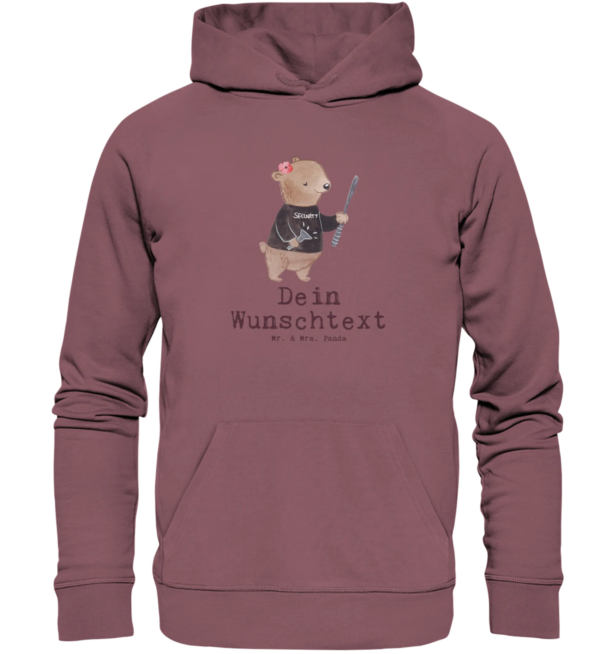 Entdecke den Wunderschönen personalisierten Hoodie mit dem Motiv "Sicherheitsdienstmitarbeiterin mit Herz" von Mr. & Mrs. Panda!