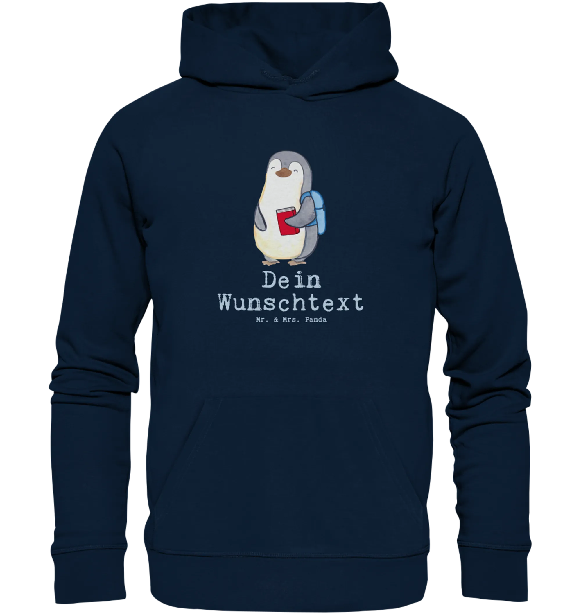 Der personalisierte Hoodie "Student mit Herz" aus unserer einzigartigen Kollektion "Berufe" ist das perfekte Geschenk für alle Studenten und jungen Akademiker! Mit dem süßen Design eines Pinguins, der voller Freude seinen Rucksack auf dem Weg zur Uni trägt, wirst du garantiert für Freude sorgen. Dieser Hoodie verkörpert nicht nur den Stolz auf das Studentenleben, sondern bietet auch die Möglichkeit, die persönliche Note durch den Wunschtext zu integrieren, sodass Du oder Deine Liebsten sich noch mehr mit dem Produkt identifizieren können.